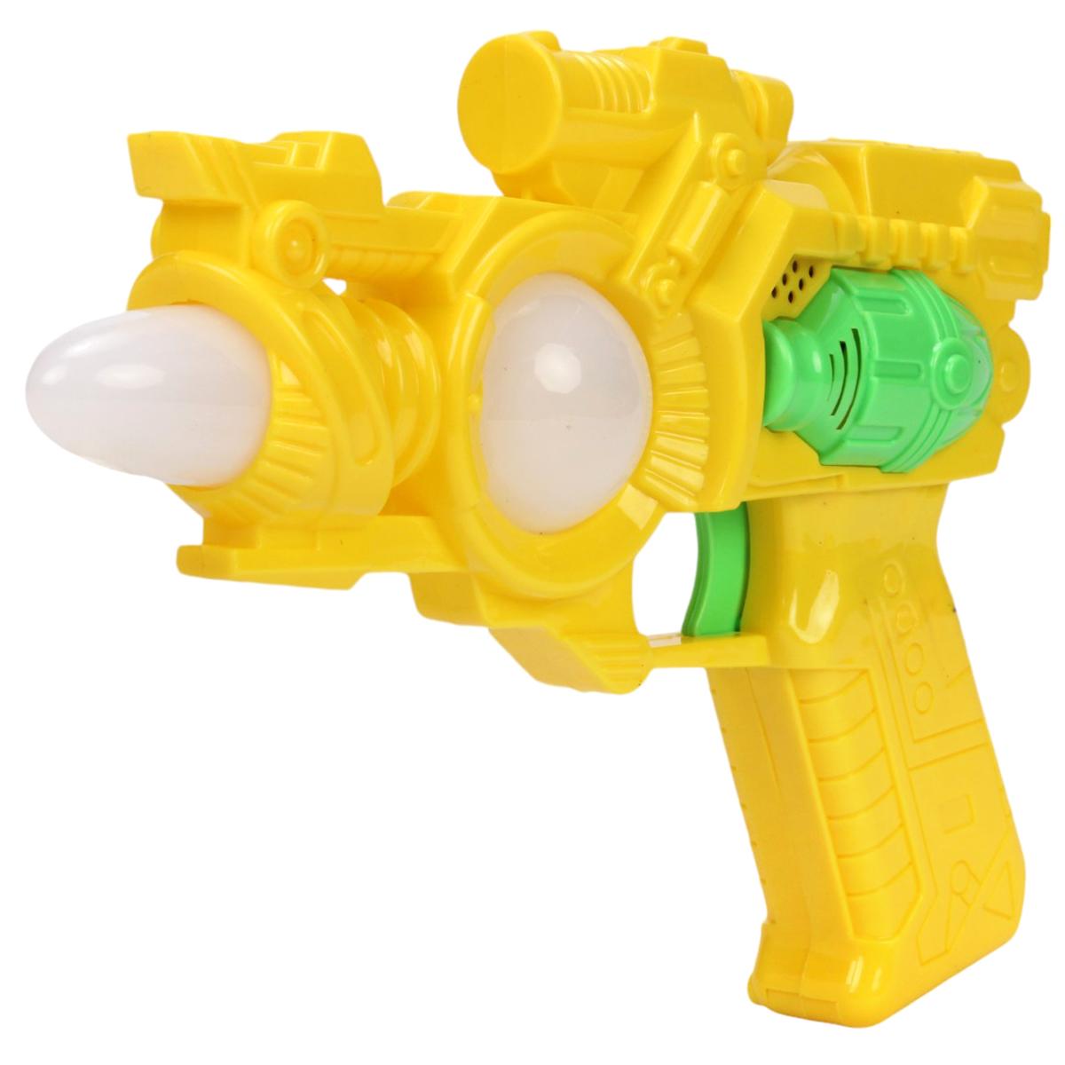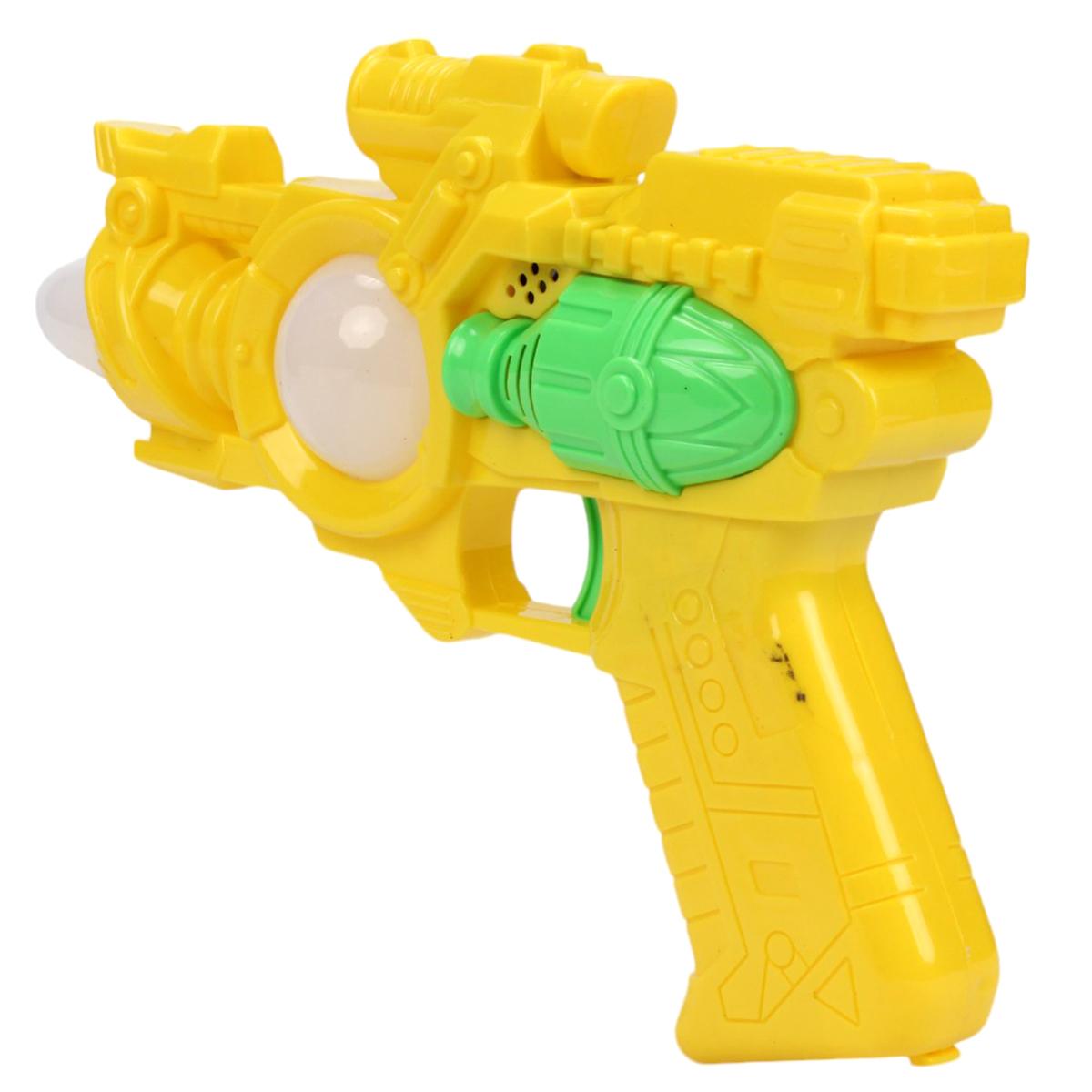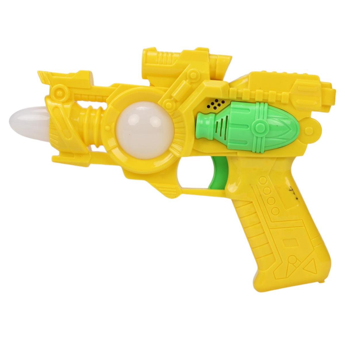 Пистолет на батарейках 20см, свет/звук, пластик, желтый/зеленый