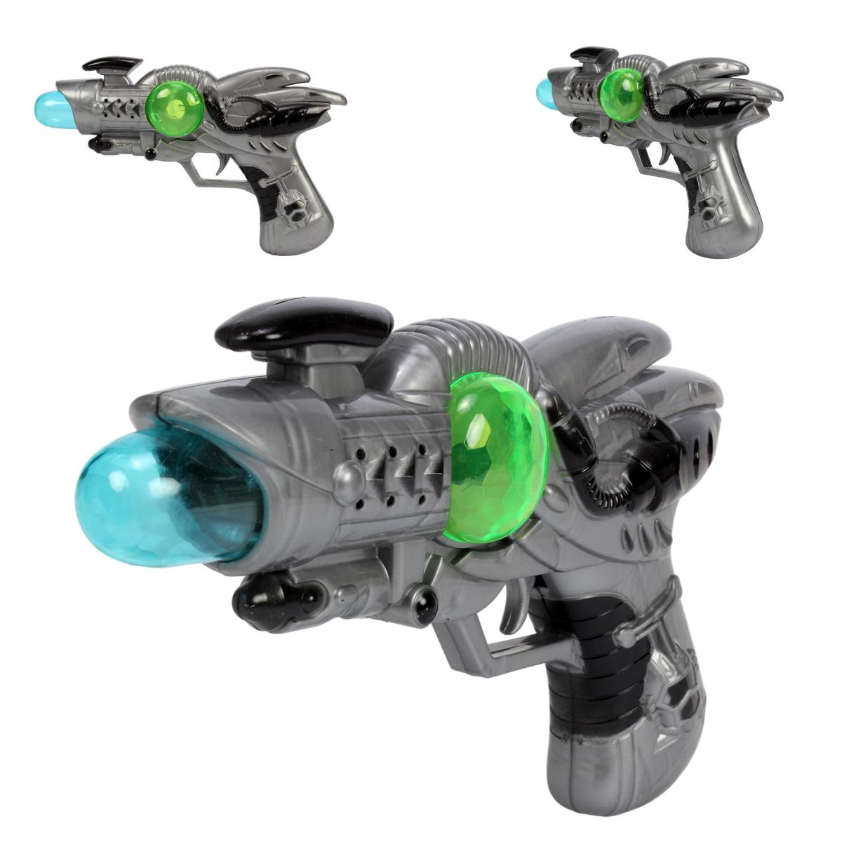 Игрушечный пистолет с эффектами света и звука создан для настоящих фанатов научной фантастики. Эргономичная форма и стильный дизайн подарят часы увлекательных игр.