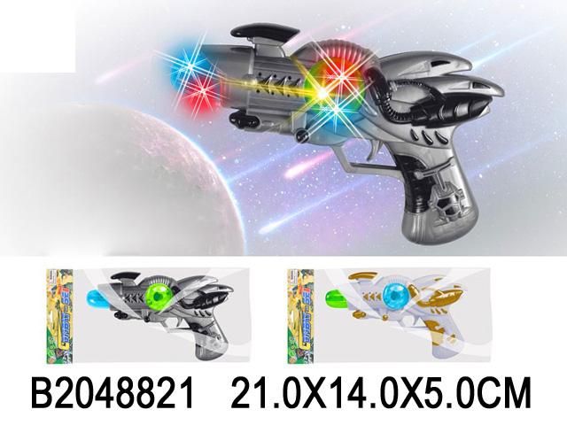 Пистолет на батарейках 21см, свет/звук, пластик, серебристый/черный