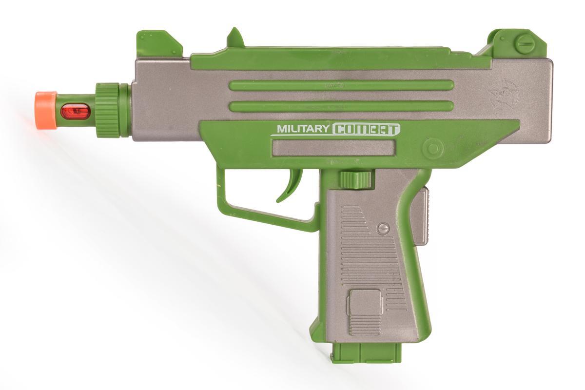 Выбирая этот пистолет, вы получаете не просто игрушку, а целый набор эмоций и впечатлений. Световые и звуковые эффекты добавляют реалистичности, а яркий дизайн в зеленом и серебристом цветах привлечет внимание вашего ребенка. Пистолет удобно держать в руке, что делает его использование комфортным и приятным.
