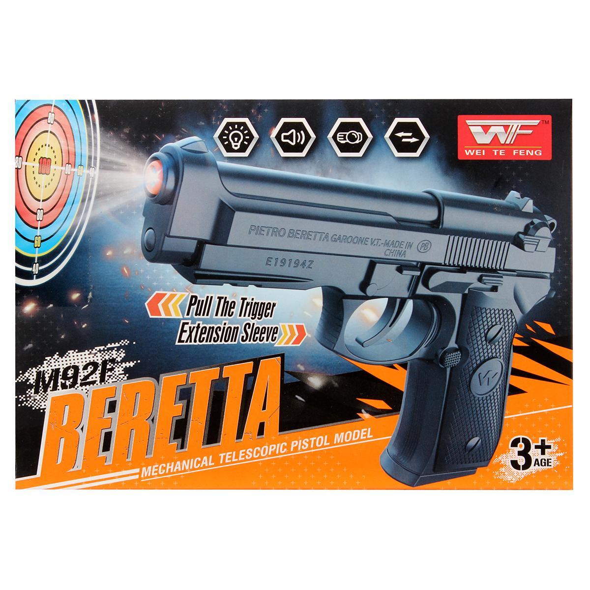 Пистолет оснащен световыми и звуковыми эффектами, что делает игру еще более увлекательной. Он идеально подходит для детей от 3 лет и станет отличным подарком на день рождения или праздник. Просто вставьте батарейки (не входят в комплект) и дайте волю фантазии!