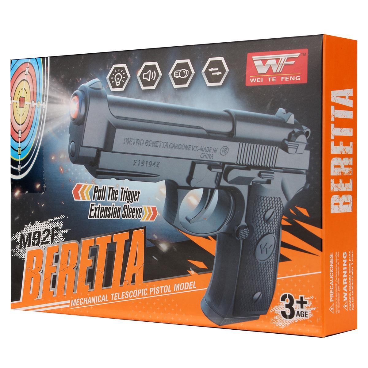 Пистолет представлен в стильном черном цвете и имеет детализированную конструкцию, имитирующую настоящие модели. Упаковка с ярким дизайном и изображением мишени привлечет внимание вашего ребенка. Не упустите шанс подарить ему незабываемые моменты радости и веселья!