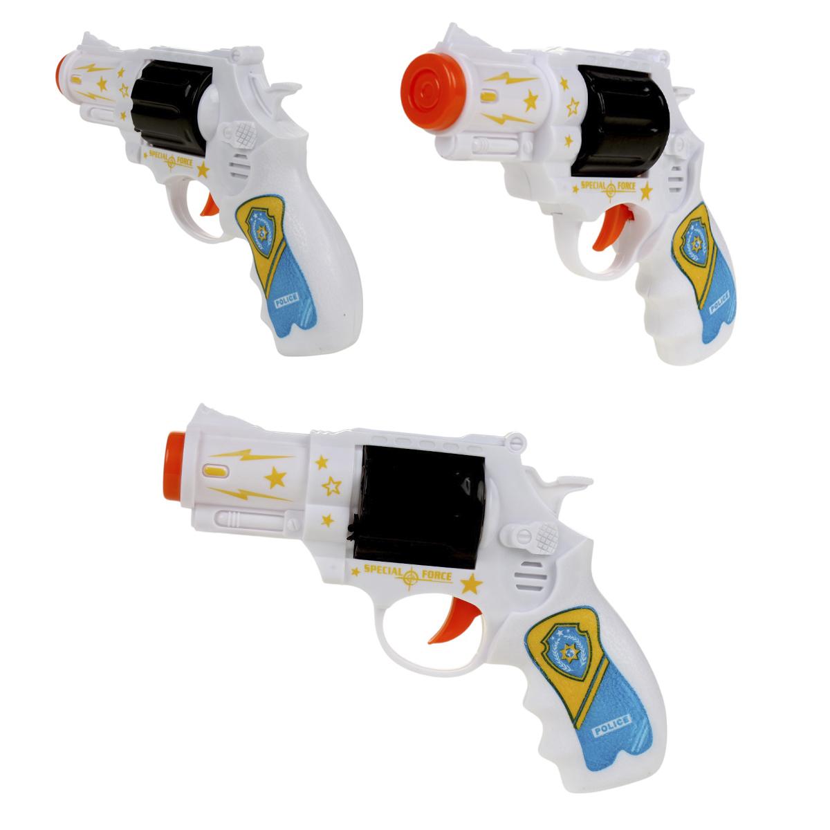 Изделие выполнено из прочного пластика с яркой окраской и декором в стиле полицейского оружия. В набор входит только сам пистолет, что делает его компактным и удобным для хранения. Надежная сборка и яркие цвета создают привлекательный внешний вид, а аккуратный дизайн способствует безопасной игре без опасности травм. Пополните коллекцию игрушек малыша этим реалистичным и забавным оружием для нескучных развлечений!