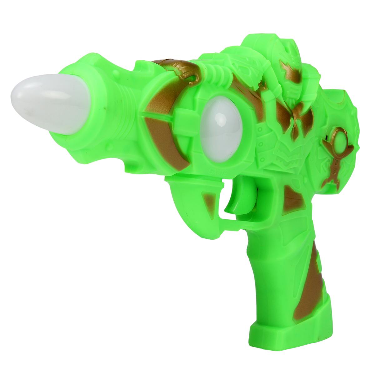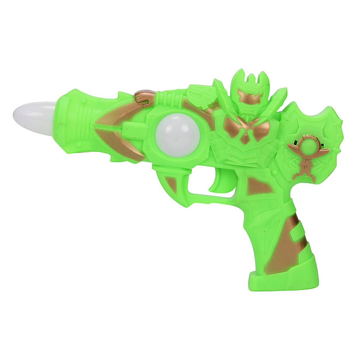 Пистолет на батарейках, зеленый/золотой, 25см, пластик, со светом и звуком