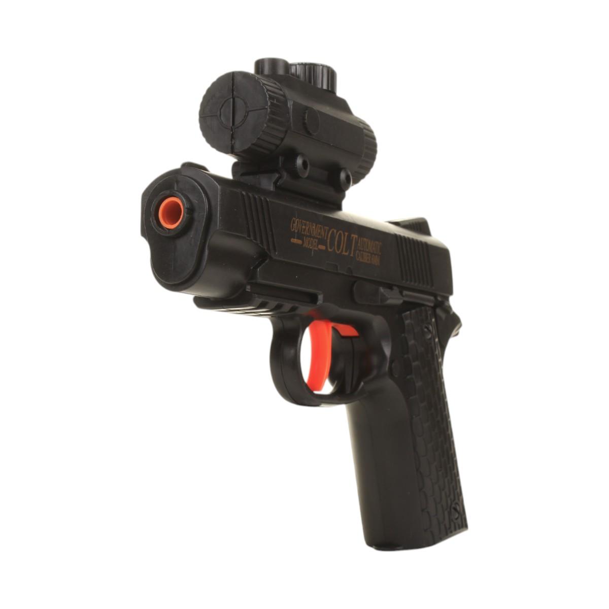 Пистолет игрушечный детский «GOVERNMENT» 18см, черный с красным, оптический и лазерный прицелы, модель 8011