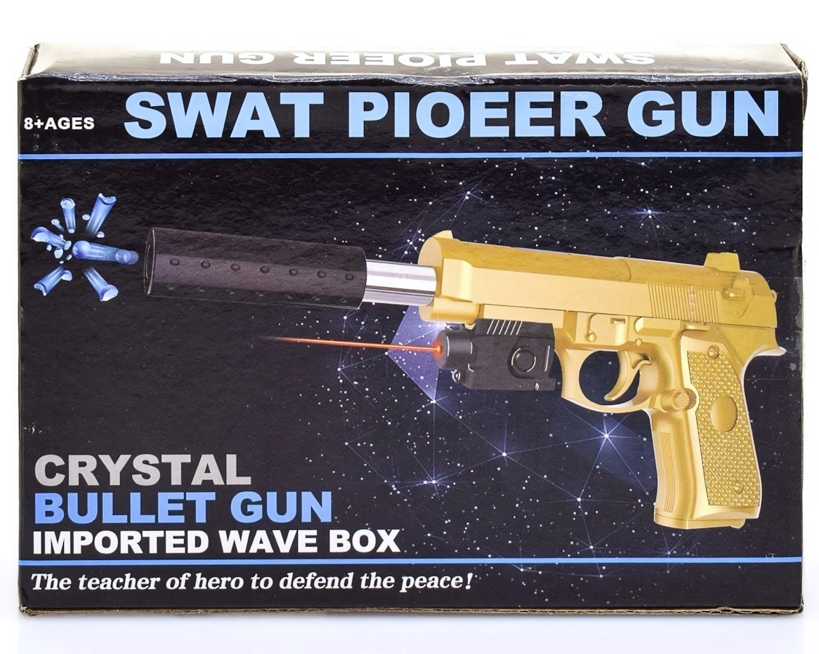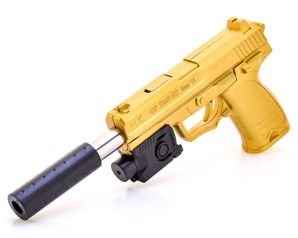 Пистолет детский «SWAT Pioneer Gun» с лазерным прицелом и глушителем, золото/черный, пластик
