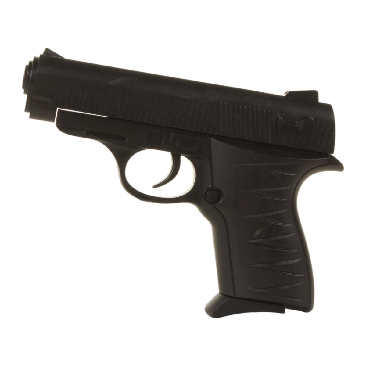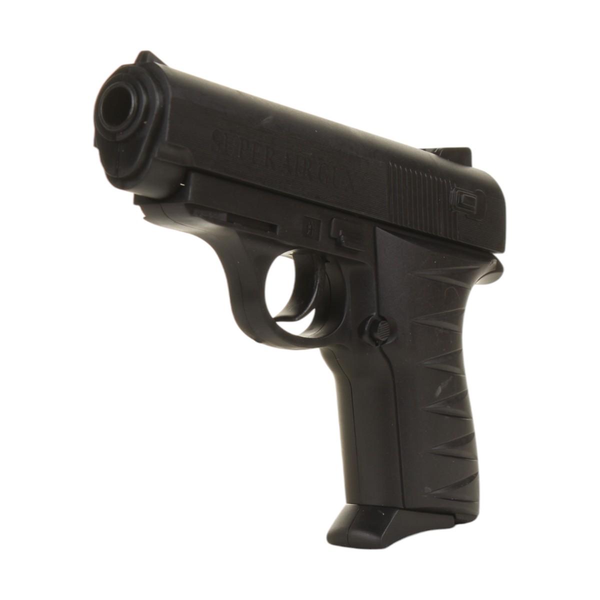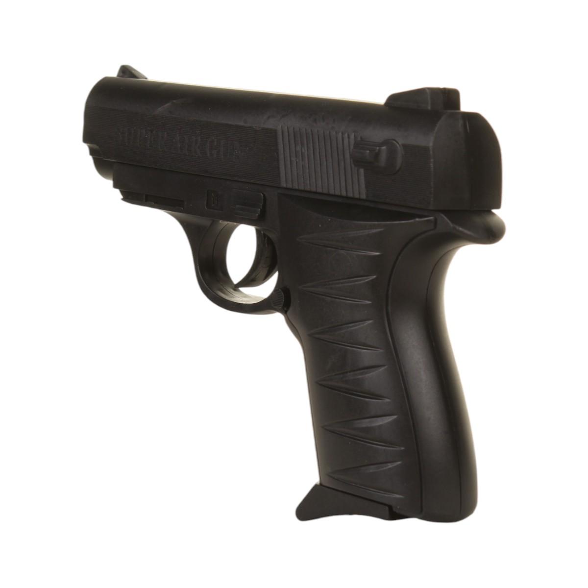 Пистолет имеет черный цвет и традиционную форму, что делает его привлекательным для детей. Текстурированная рукоятка обеспечивает удобный захват, а рифления на верхней части пистолета улучшают сцепление при использовании. Этот игрушечный детский пистолет станет отличным дополнением к игровой коллекции вашего ребенка!