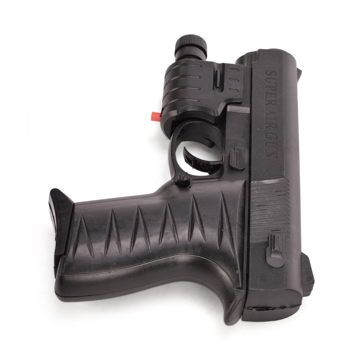 Размер упаковки составляет 15,0 * 10,0 * 2,5 см, что делает его удобным для хранения и транспортировки. Пистолет выполнен в черном цвете и имеет гладкую поверхность с рифлеными элементами на рукоятке для удобства хвата. Он станет отличным подарком для любого ребенка, который мечтает о приключениях и хочет стать настоящим героем!