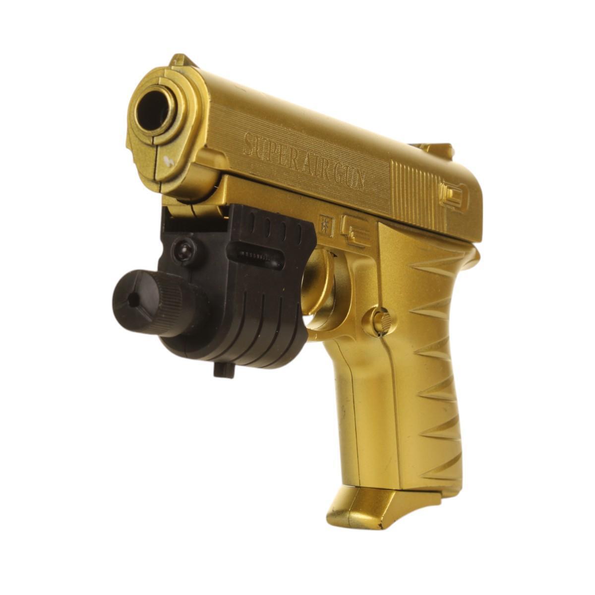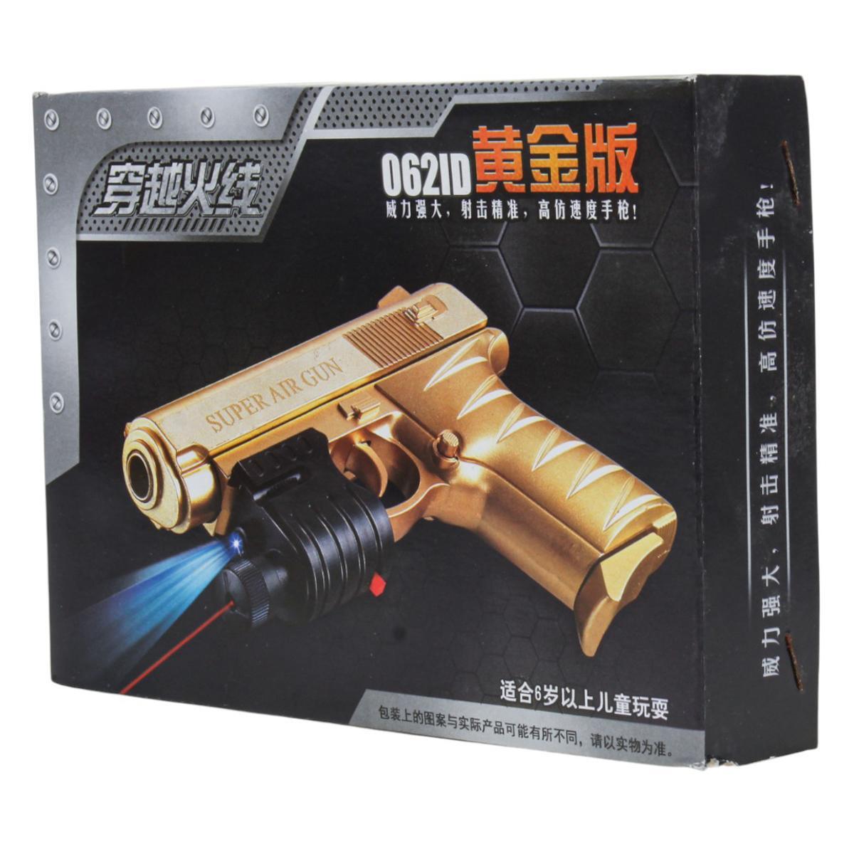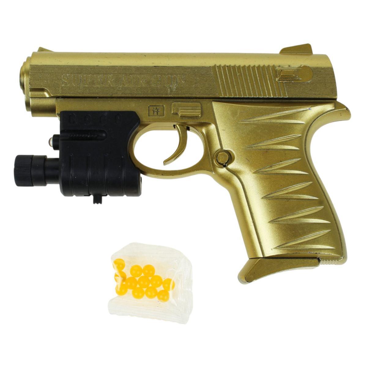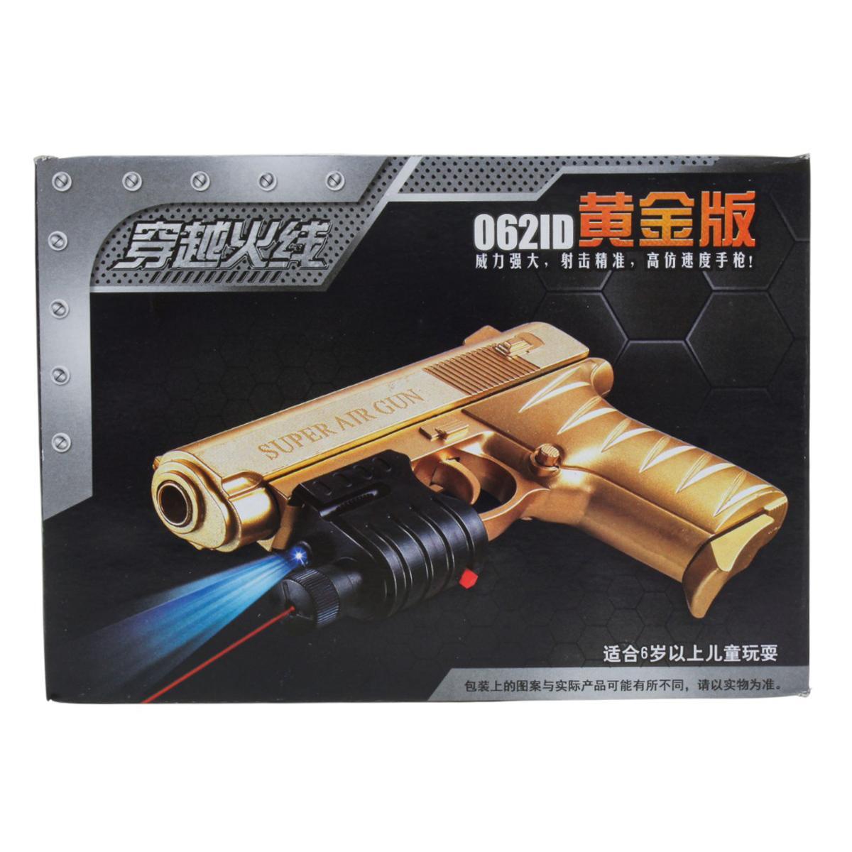 Пистолет выполнен из прочного и безопасного пластика, что обеспечивает долговечность и безопасность при использовании. В комплект входит лазерный прицел и набор пуль, что делает игру более интересной и разнообразной.