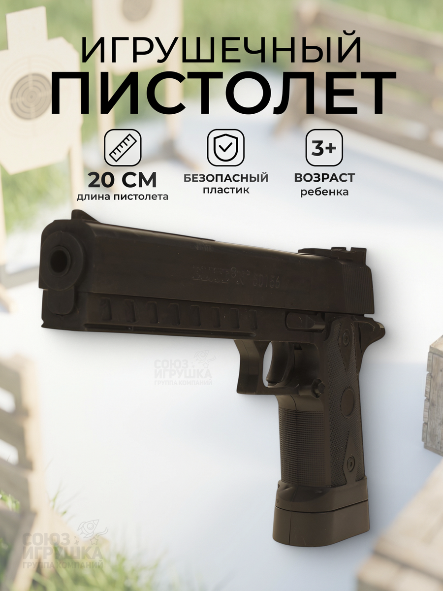 Игрушечный детский пистолет для детей от 3 лет, черный, прочный пластик, 23х2х13 см