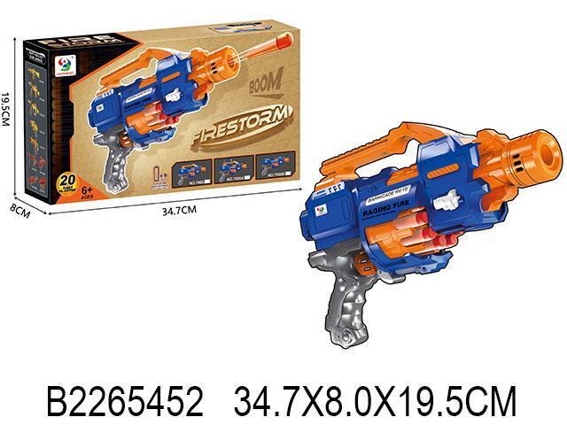 Пистолет игрушечный «FIRESTORM» с мягкими пулями, 6 патронов, безопасная стрельба, 34,7 см, синий, оранжевый