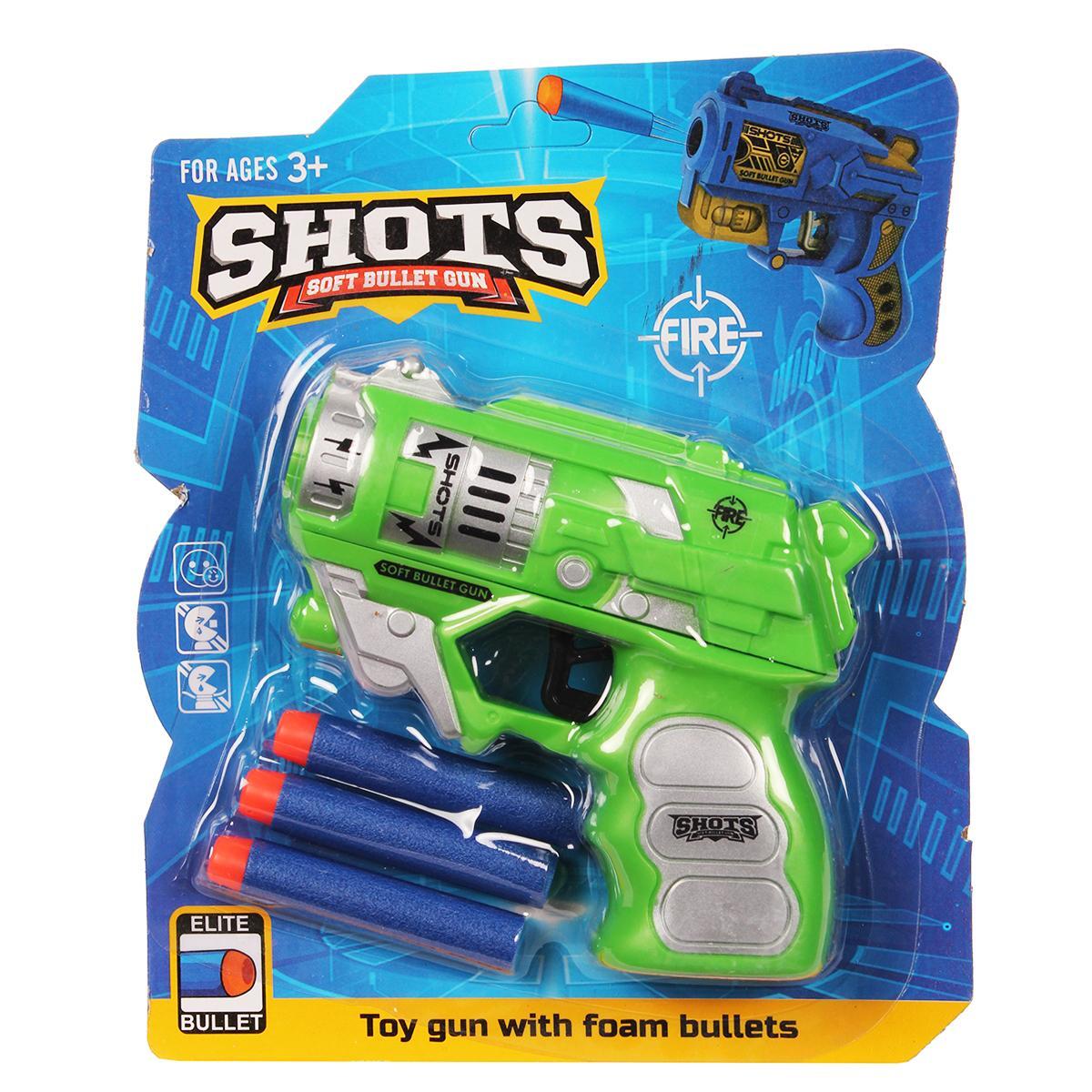 Игрушечный пистолет легко держать и управлять, он оснащен мягкими патронами, которые легко заряжаются и безопасны для детей. В комплект входит 3 мягких синих пули с оранжевыми наконечниками, что делает игру безопасной и захватывающей. Благодаря яркому дизайну и эргономичной форме, пистолет нравится детям и станет отличным подарком.