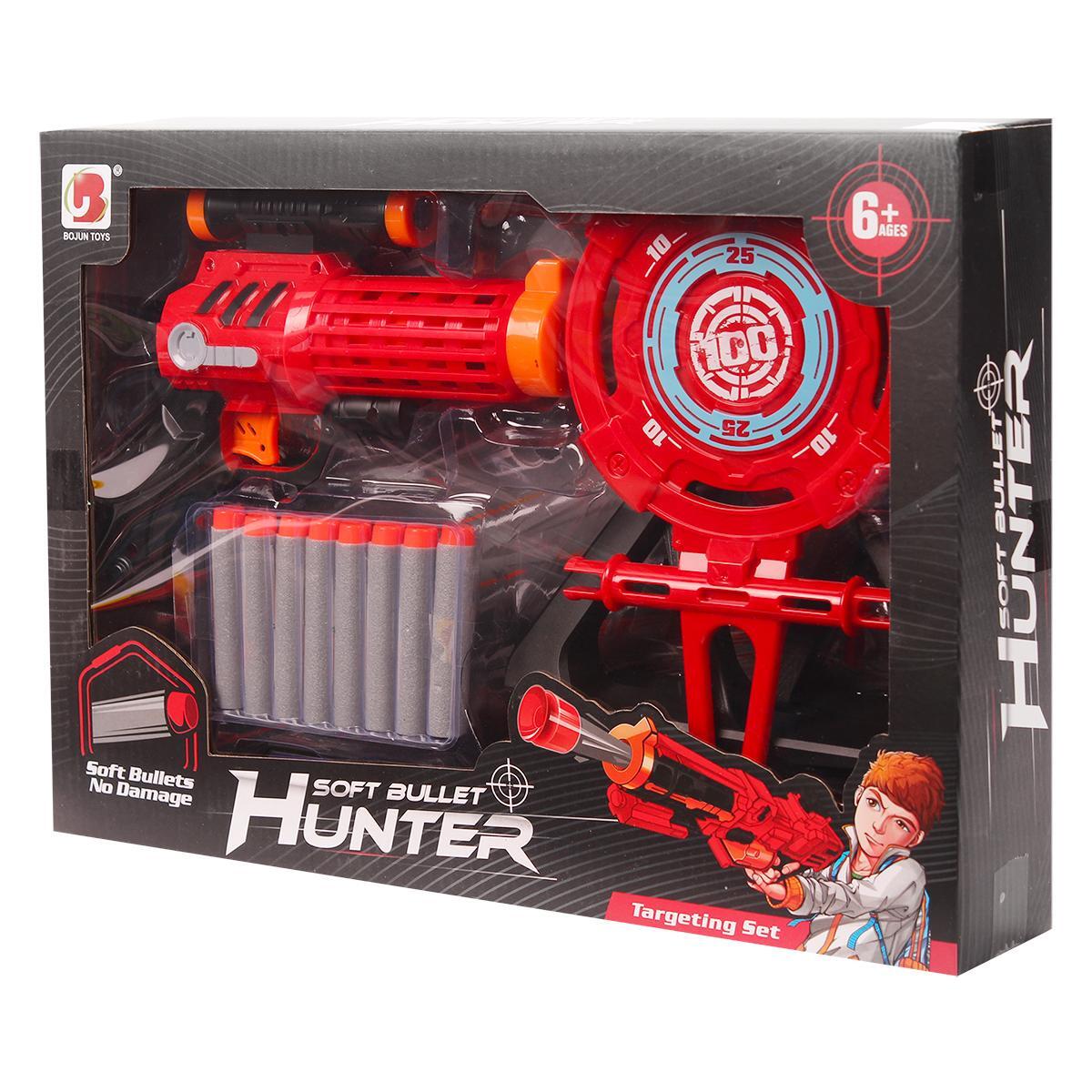Этот набор включает пластиковый пистолет, мягкие патроны и мишень, что делает его идеальным для развлечений на улице и в помещении. Он подойдет детям от 6 лет, обеспечивает безопасную и увлекательную игру, помогает развивать реакцию и точность.