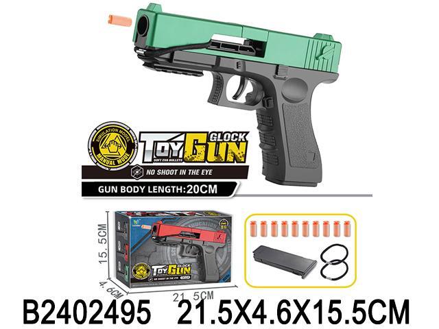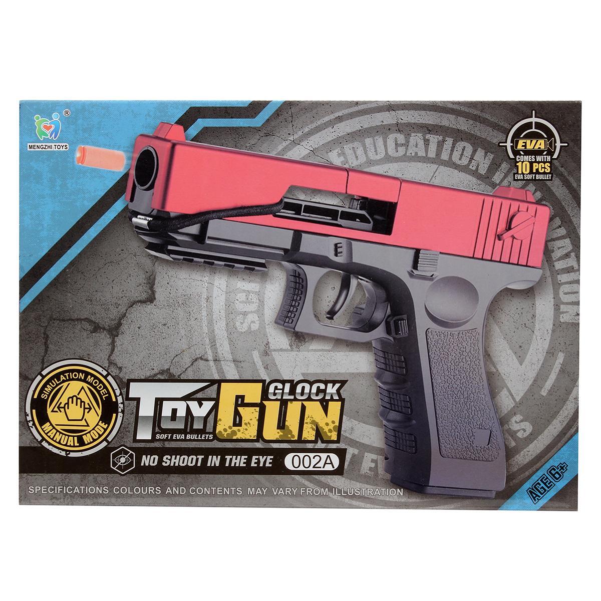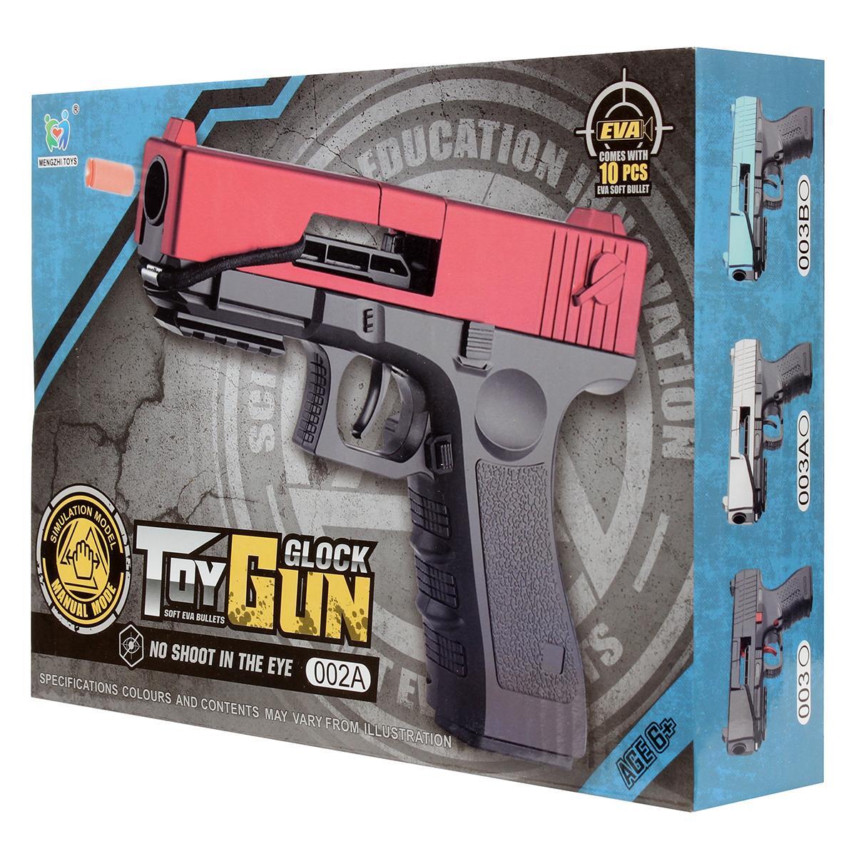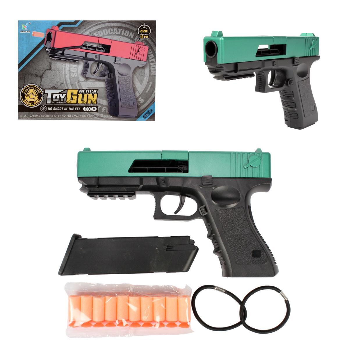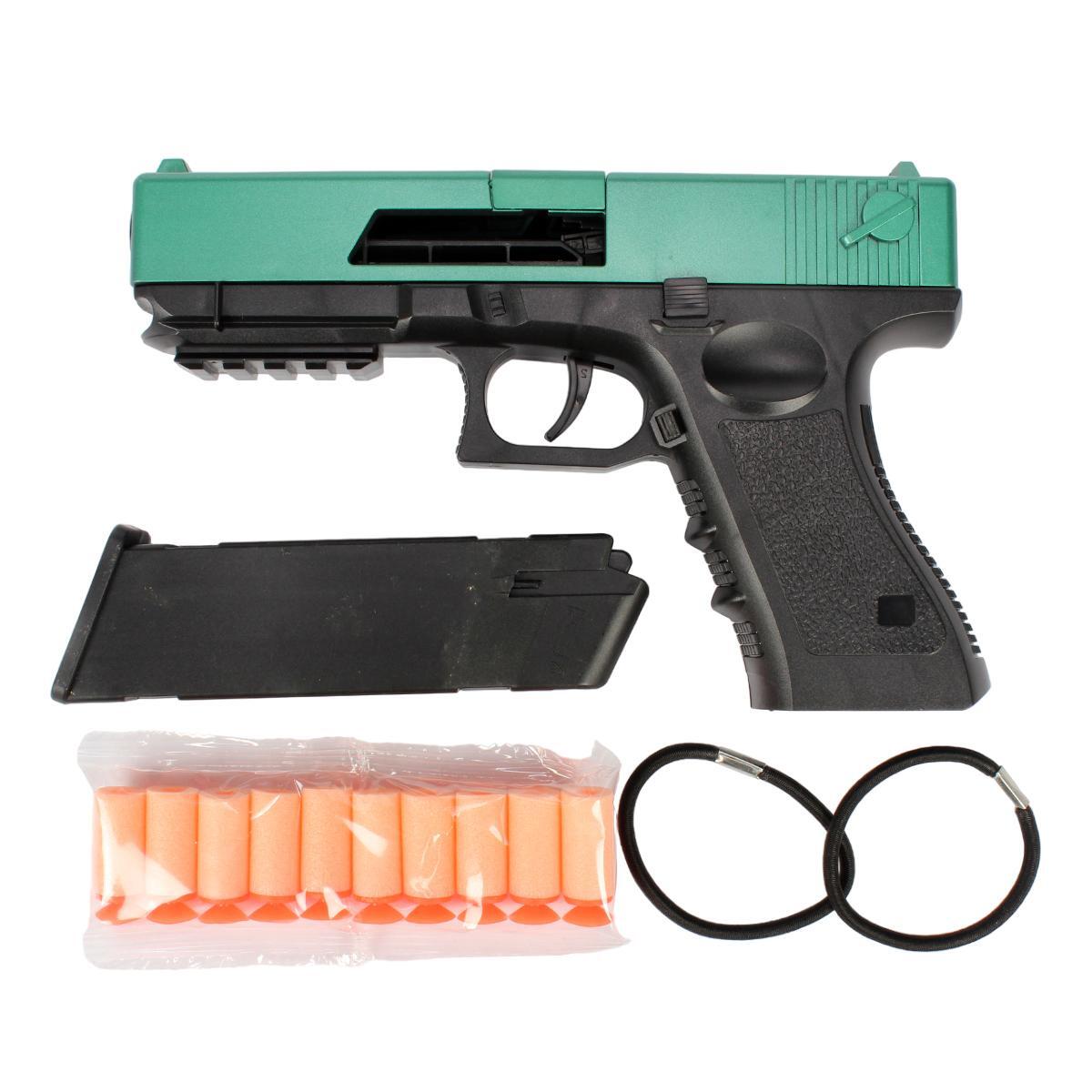 В комплект входит пистолет, магазин и 10 мягких пуль. Просто зарядите магазин, установите его в пистолет и наслаждайтесь безопасными баталиями. Важно помнить: нельзя целиться в глаза!