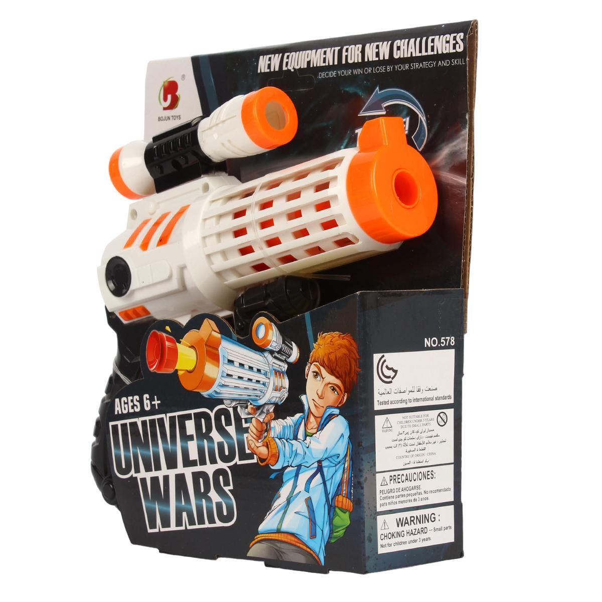 Бластер детский "UNIVERSE WARS" с мягкими пулями, пластик, белый/оранжевый, 3 патрона