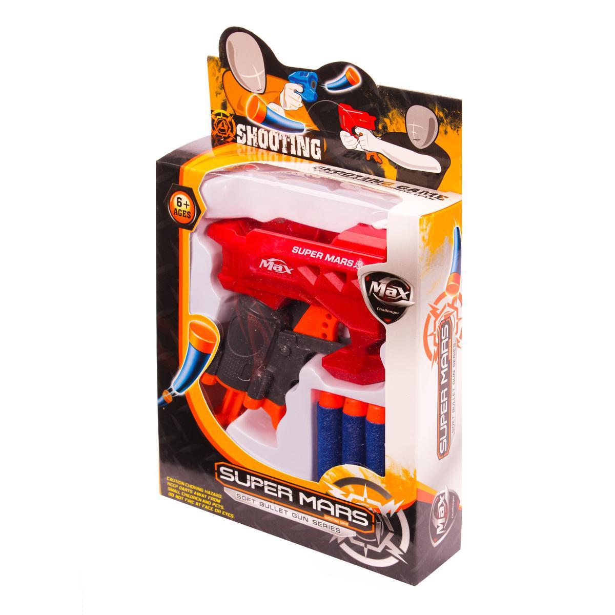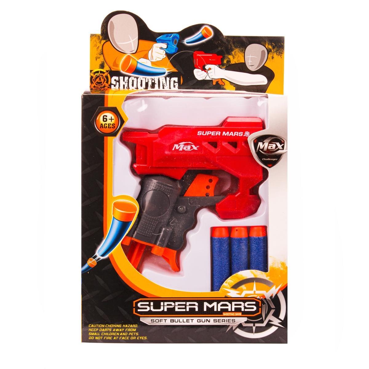 Пистолет с мягкими пулями "SUPER MARS", 3 снаряда, пластик, красный/черный
