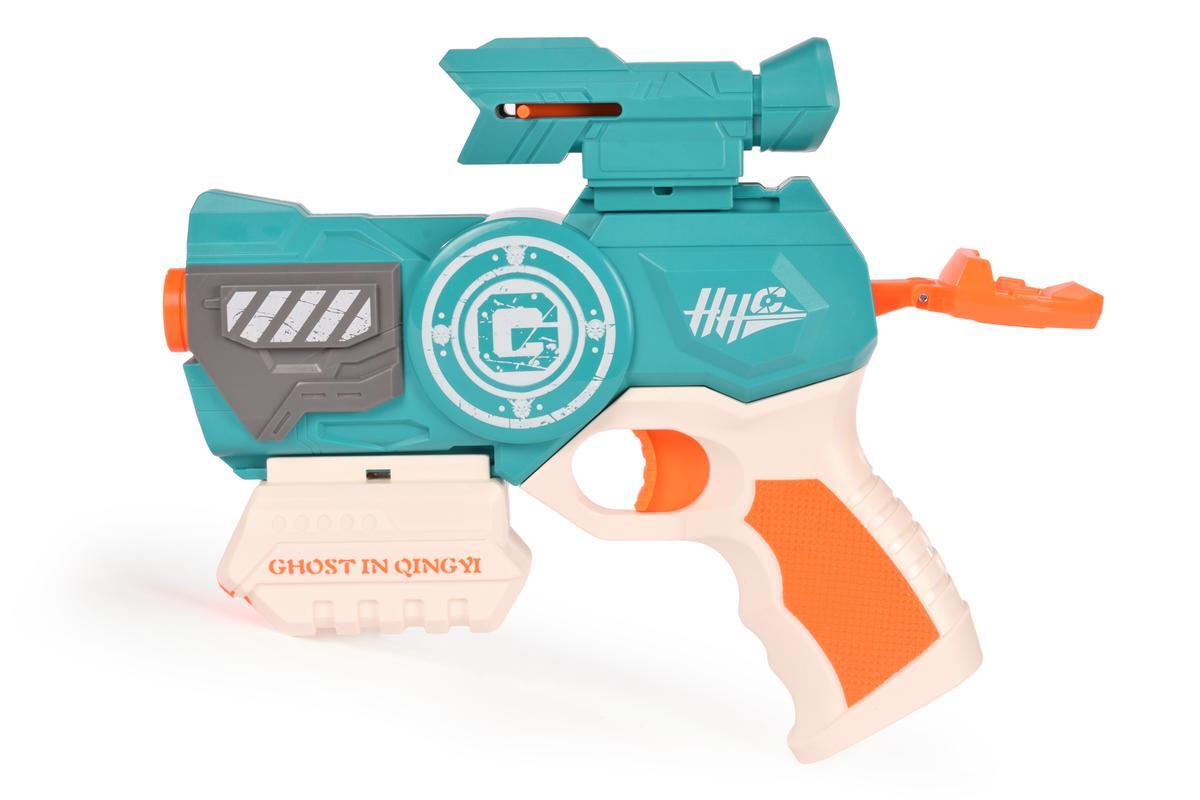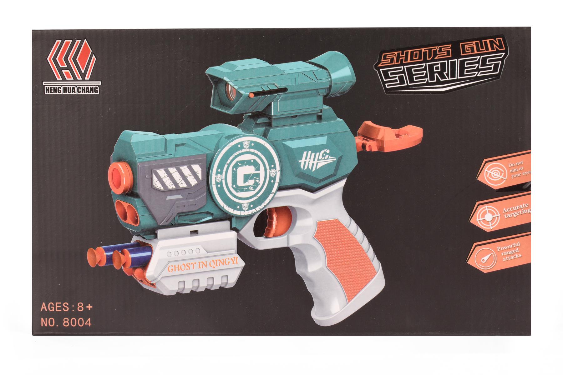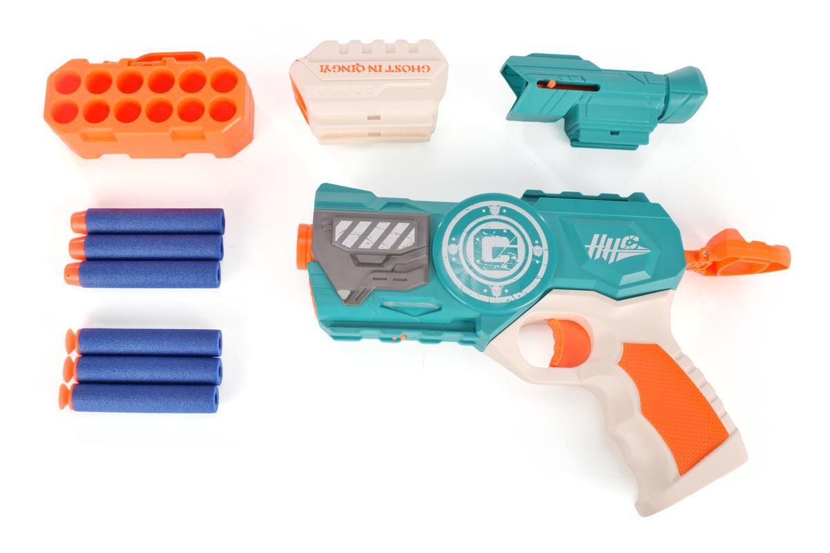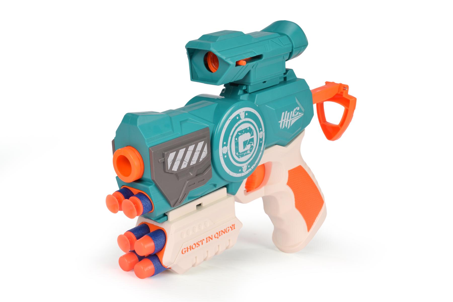 Пистолет игрушечный с мягкими пулями «GHOST IN QINGYI 8004A», 6 софт-патронов, магазин, пластик, упаковка 28х5х17см