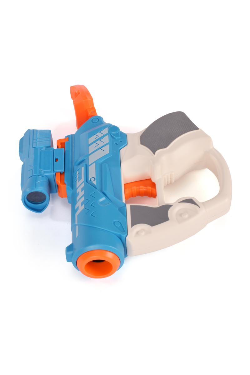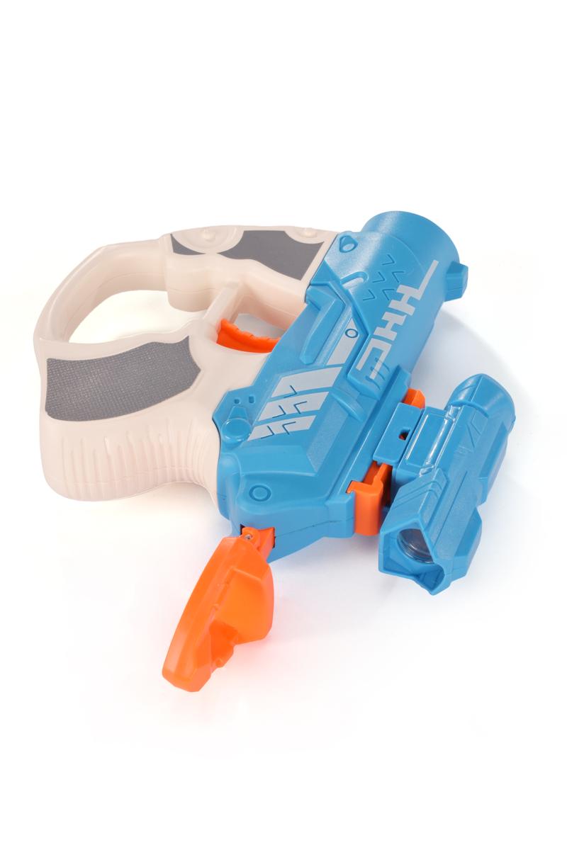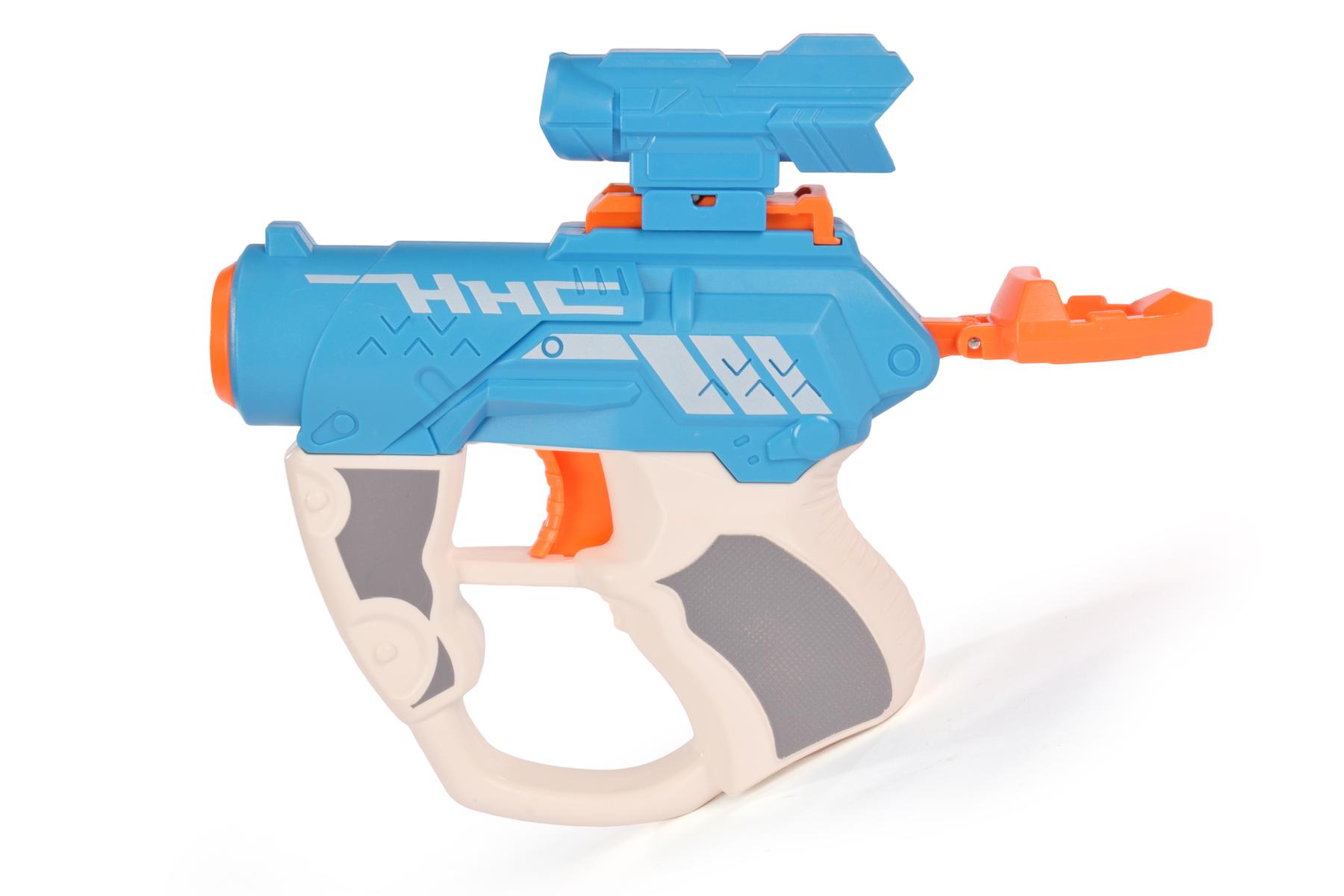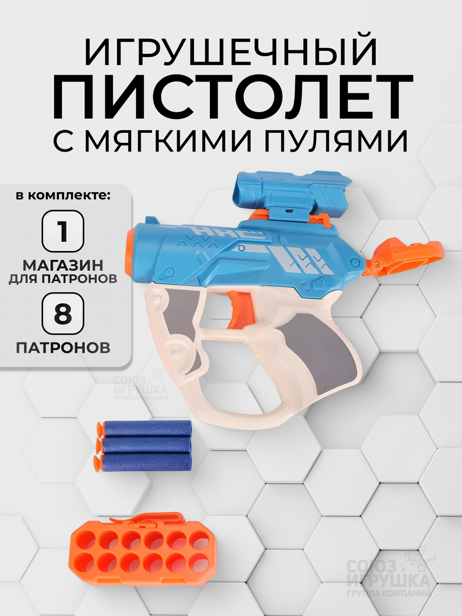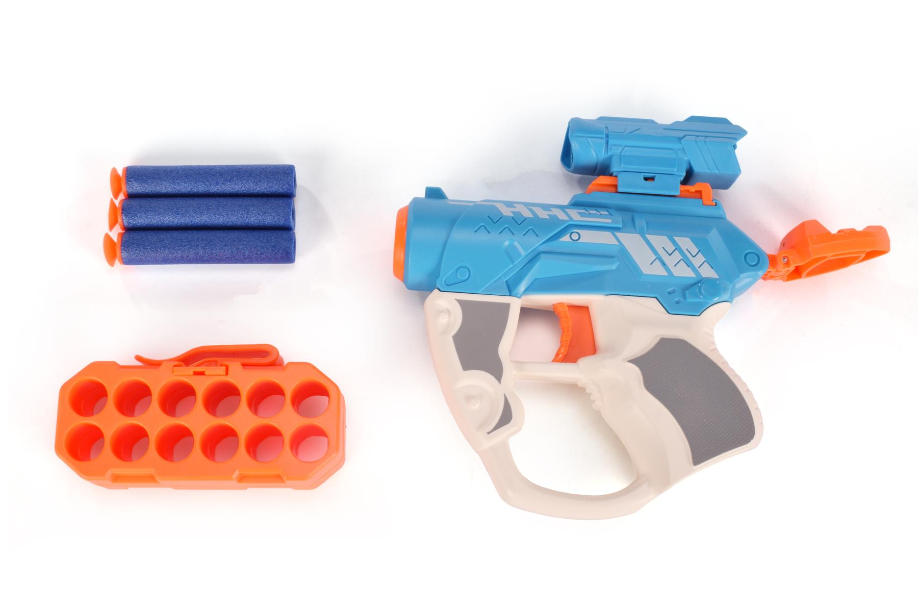 Игрушечный пистолет с мягкими пулями, 3 патрона и магазином, пластик, голубой/оранжевый