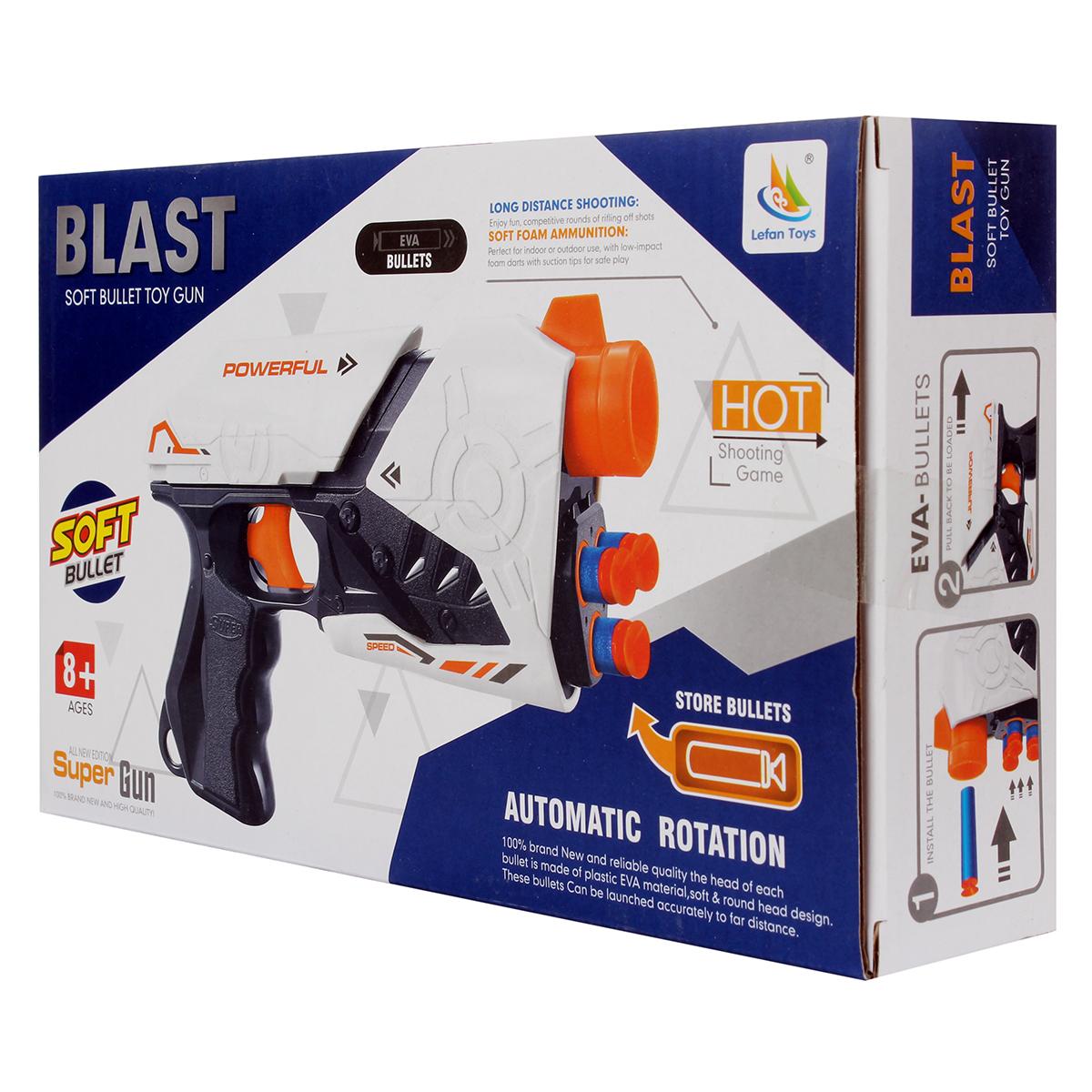 Почему стоит выбрать именно этот пистолет? Во-первых, он безопасен для детей благодаря мягким пулям из EVA-материала, которые не причинят вреда при игре. Во-вторых, его современный дизайн и яркие цвета привлекают внимание и делают игру более увлекательной. В-третьих, наличие функции автоматической ротации позволяет легко менять положение патронов, что добавляет элемент неожиданности в игру.