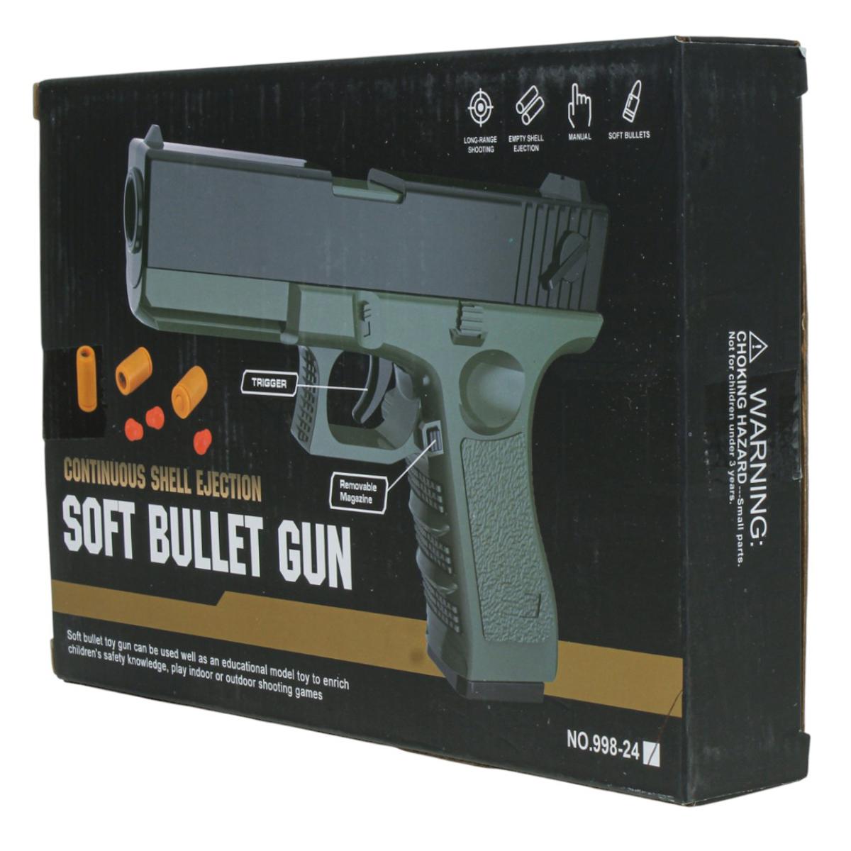 Этот игрушечный пистолет с мягкими пулями предназначен для безопасных игр как дома, так и на улице. Он позволяет детям развивать моторику и воображение, не опасаясь травм.