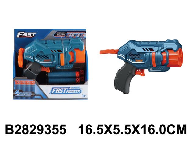 В набор входит пистолет и 4 мягкие пули. Просто зарядите игрушку, нажмите на курок и стреляйте! Идеально подходит для игр как в помещении, так и на улице. Важно: цвет пистолета определяется случайным образом из доступных вариантов.