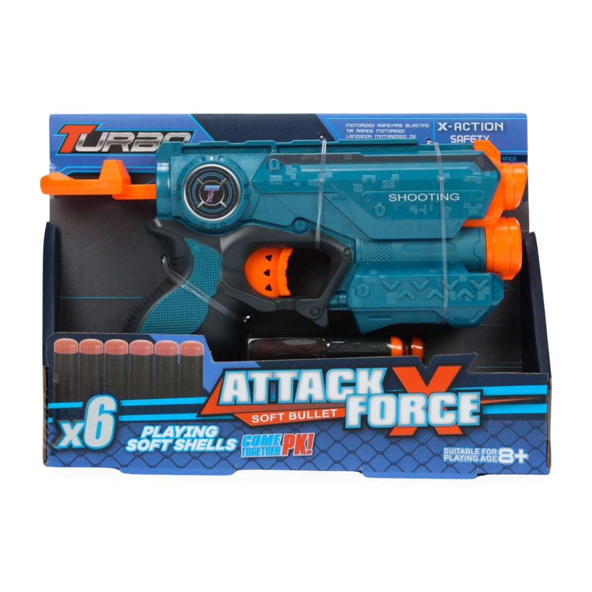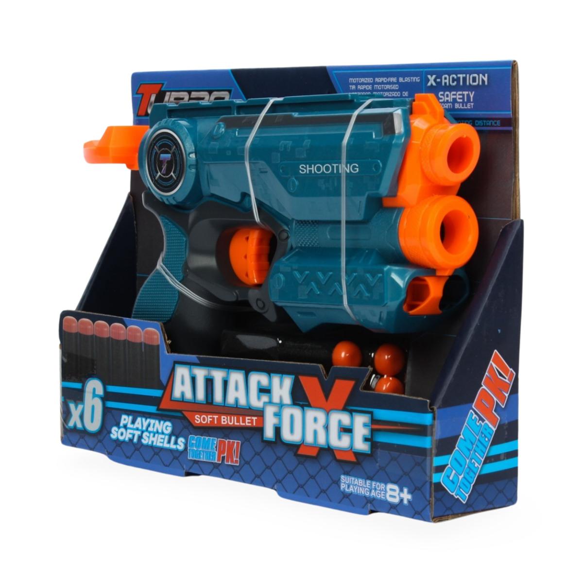 Пистолет с мягкими пулями "ATTACK FORCE", 6 снарядов, пластик, синий/оранжевый