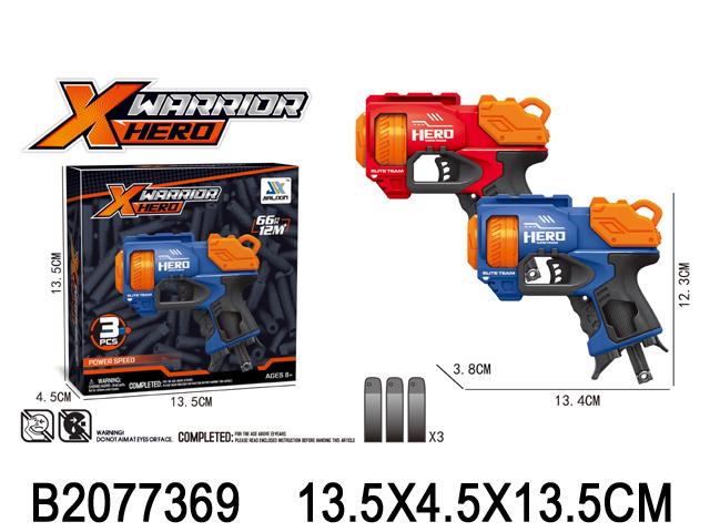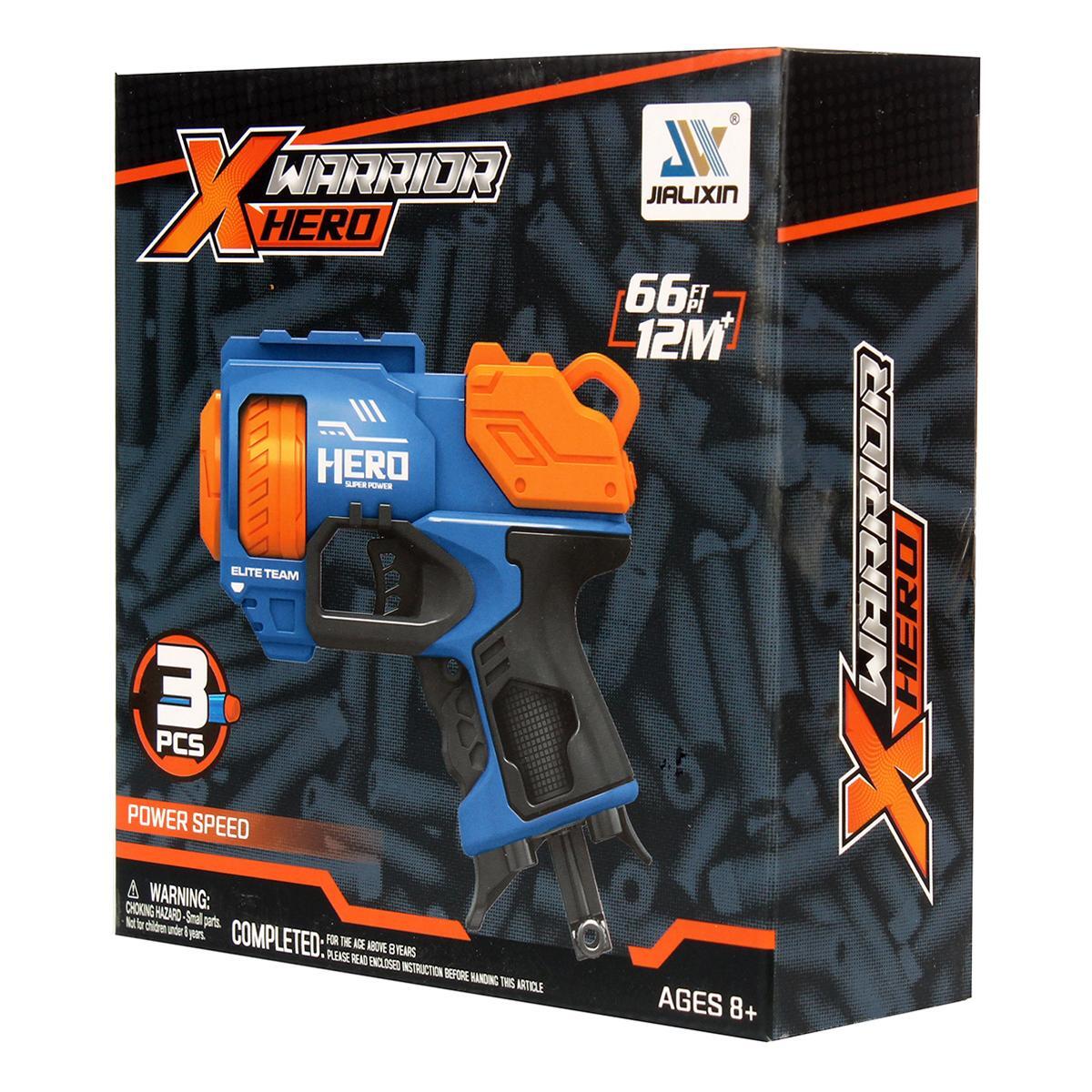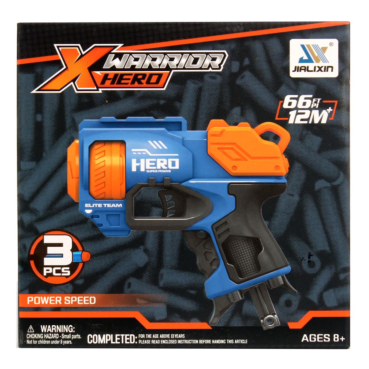 Погрузитесь в мир приключений с пистолетом 'X Warrior Hero'. Этот яркий бластер создан для того, чтобы подарить вашему ребенку часы увлекательной игры и развить его воображение.