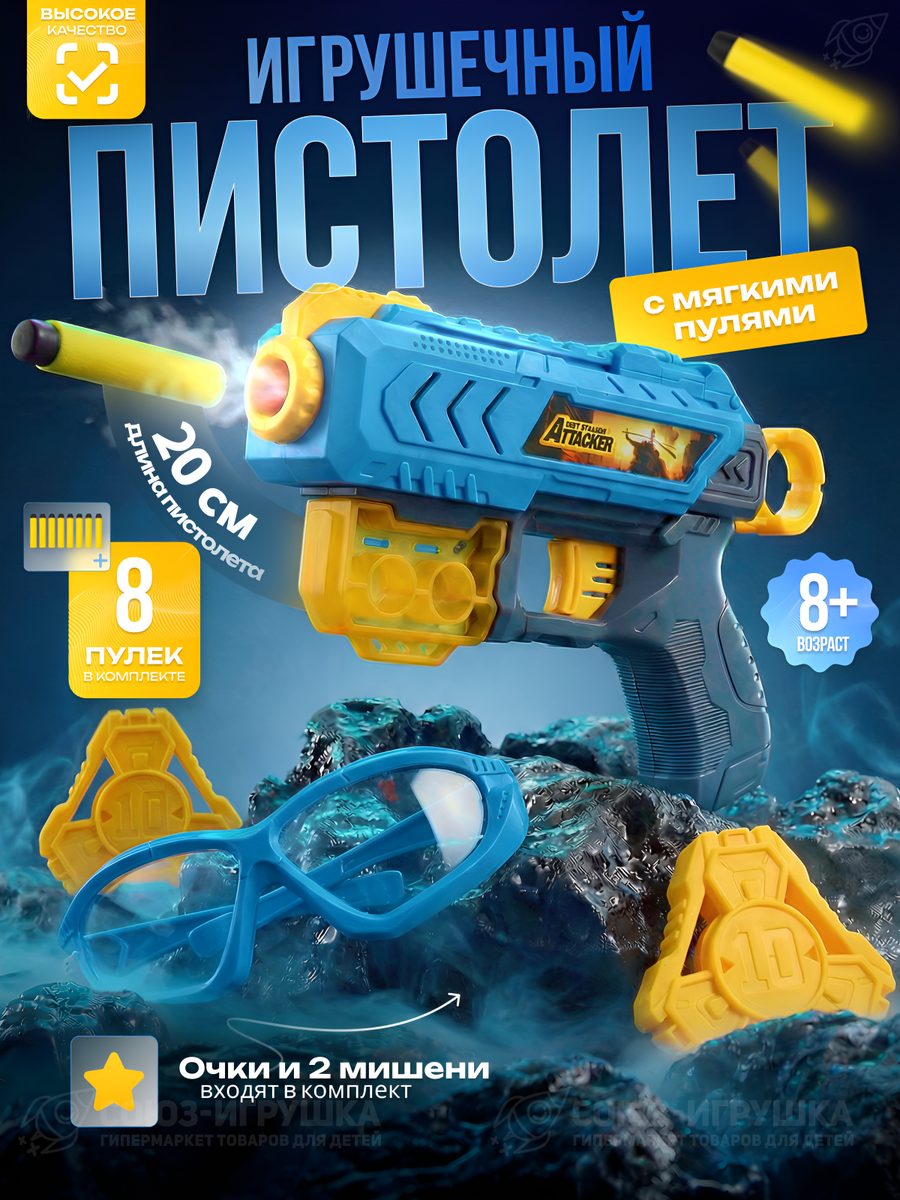Игрушечный пистолет "Attacker" с мягкими поролоновыми пулями — это отличный способ подарить ребенку увлекательную и, что самое важное, безопасную игру. Набор специально разработан для детей от 8 лет и включает всё необходимое для захватывающих сражений с друзьями. Мягкие пули не причиняют боли и не оставляют следов, позволяя наслаждаться игрой без риска.