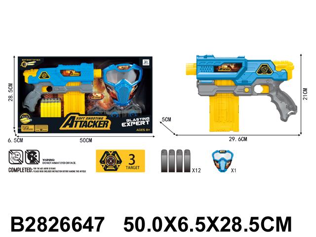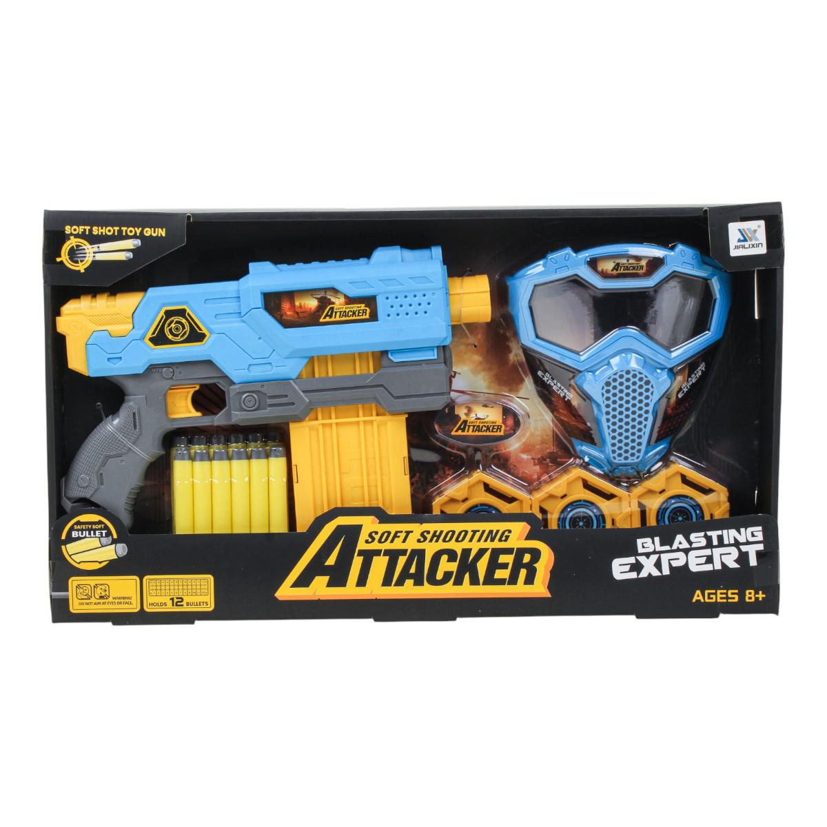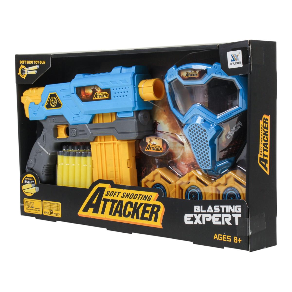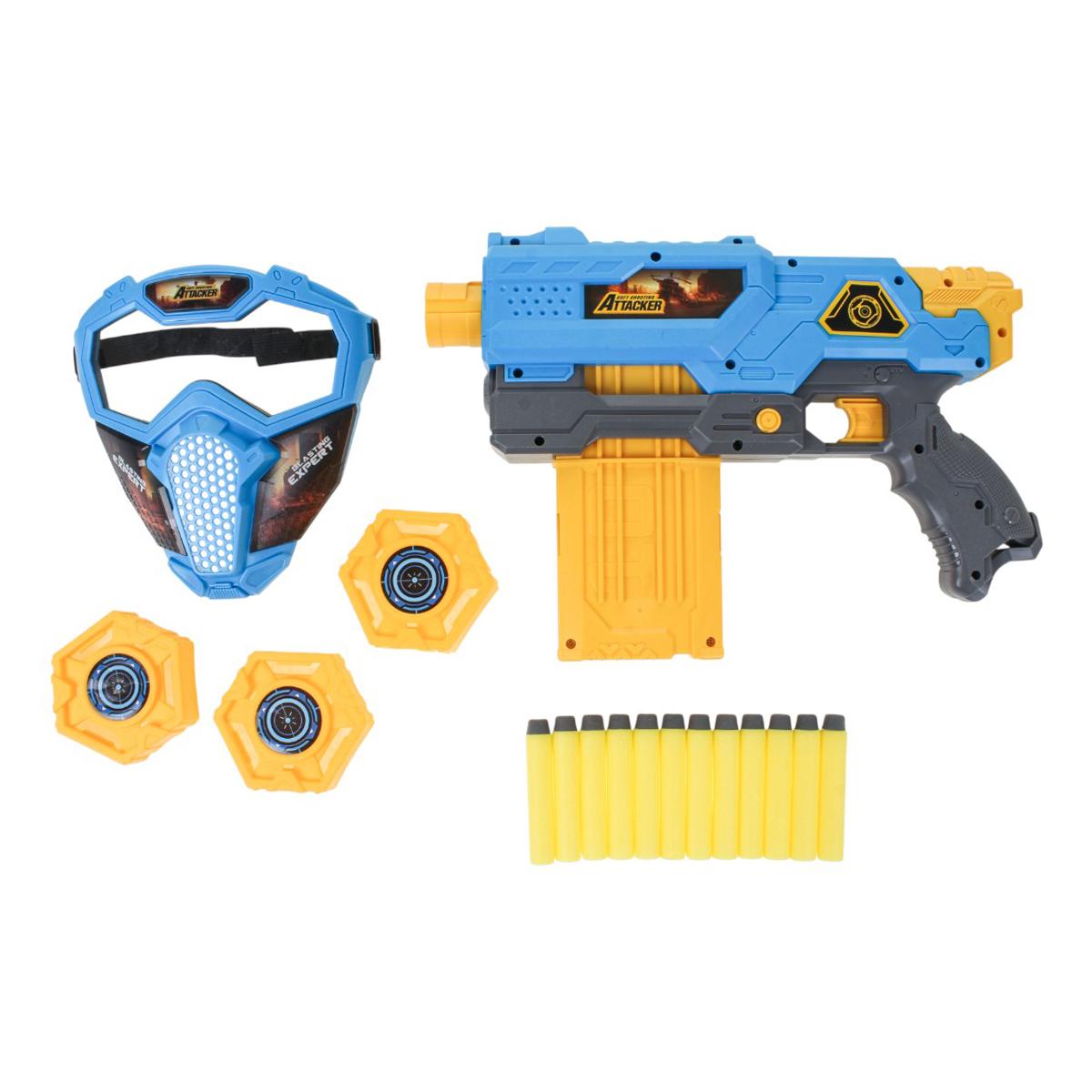 Пистолет с мягкими пулями "SOFT SHOOTING ATTACKER", 29.6 см, в комплекте с маской и мишенями, для детей от 8 лет