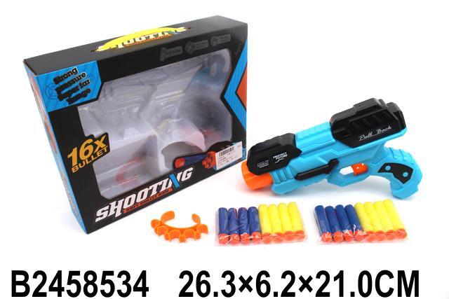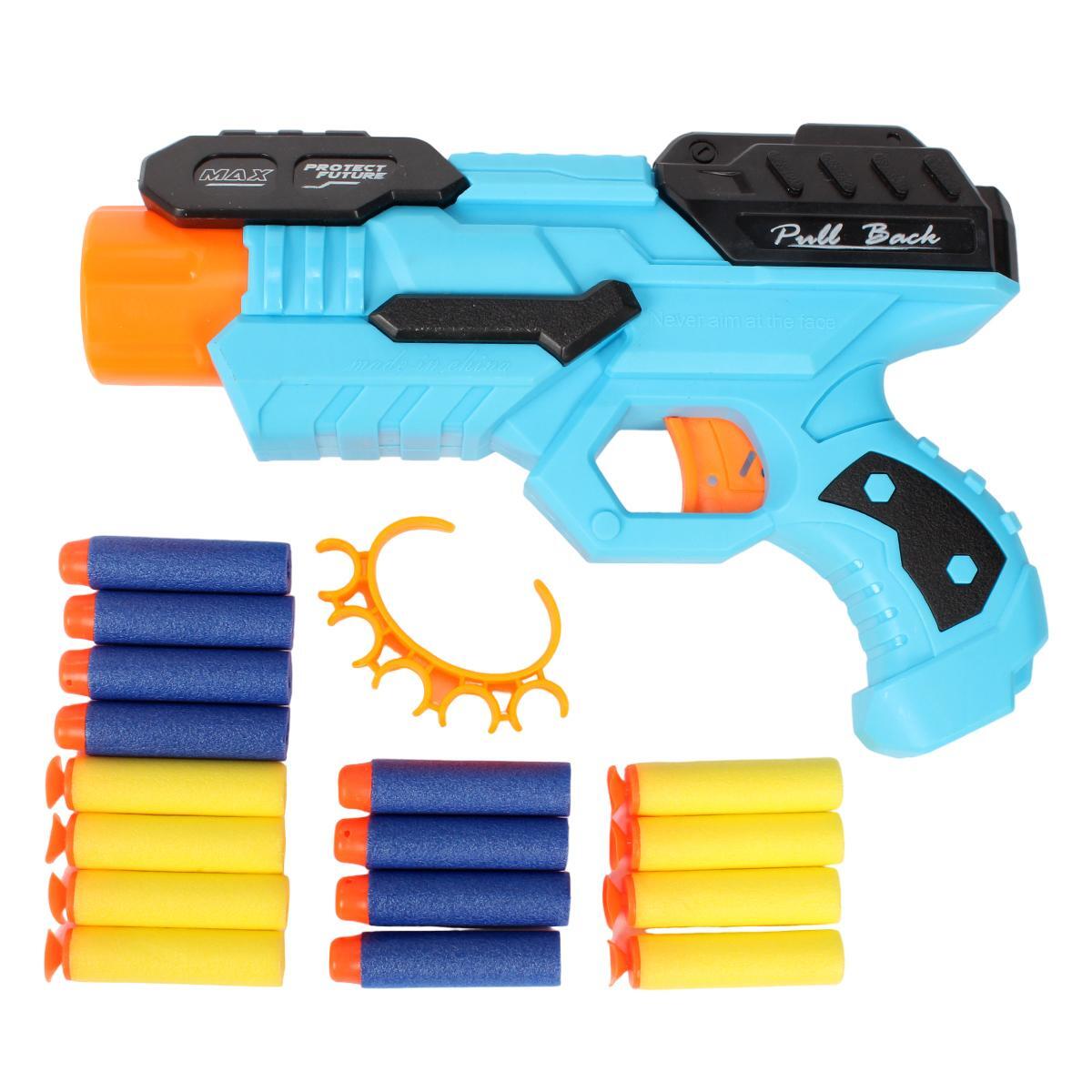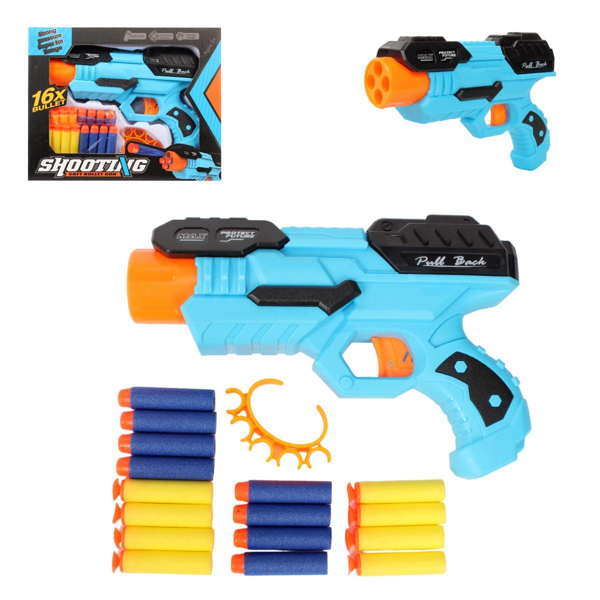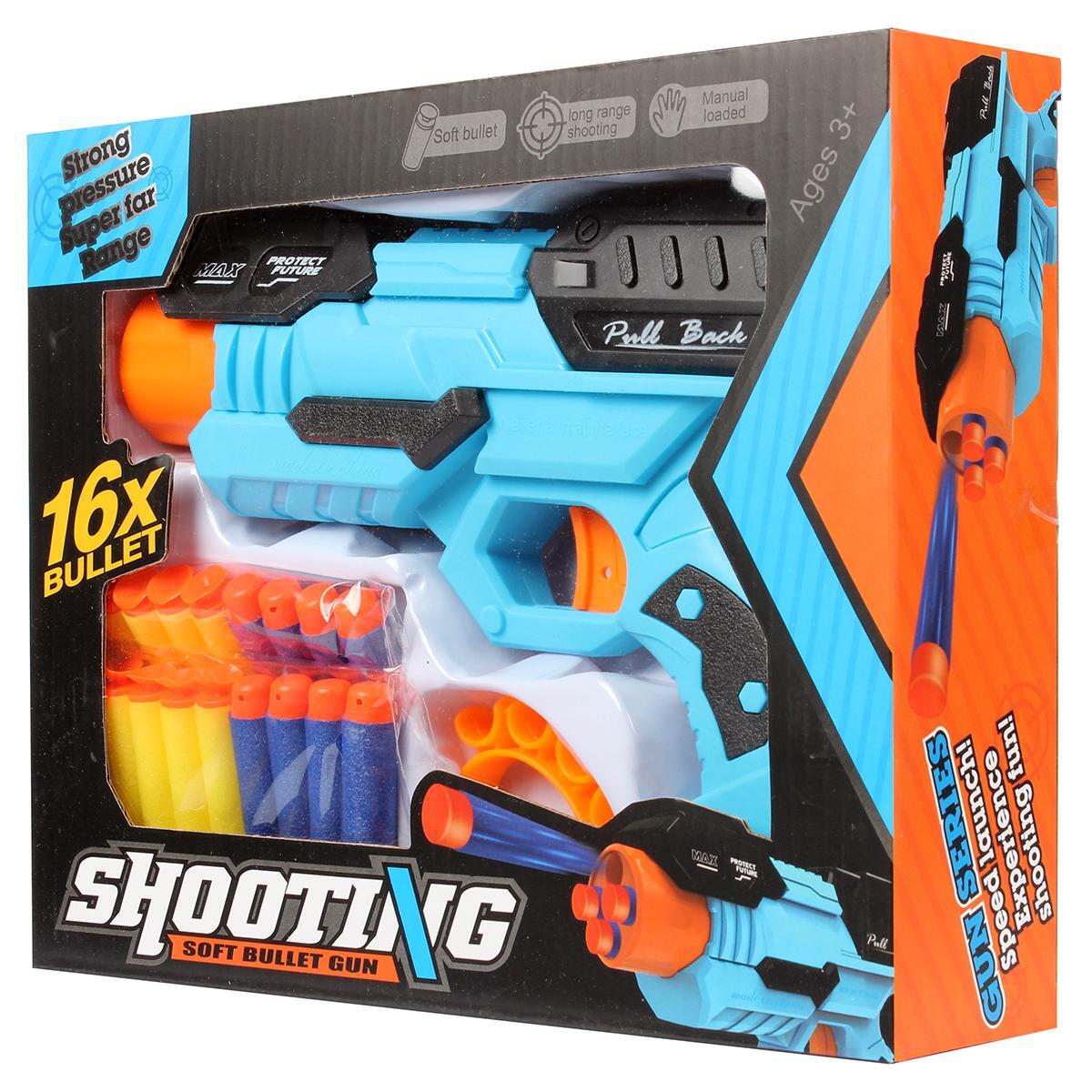 Пистолет игрушечный «SHOOTING» с 16 мягкими пулями, голубой, пластик, безопасная игра для детей от 3 лет