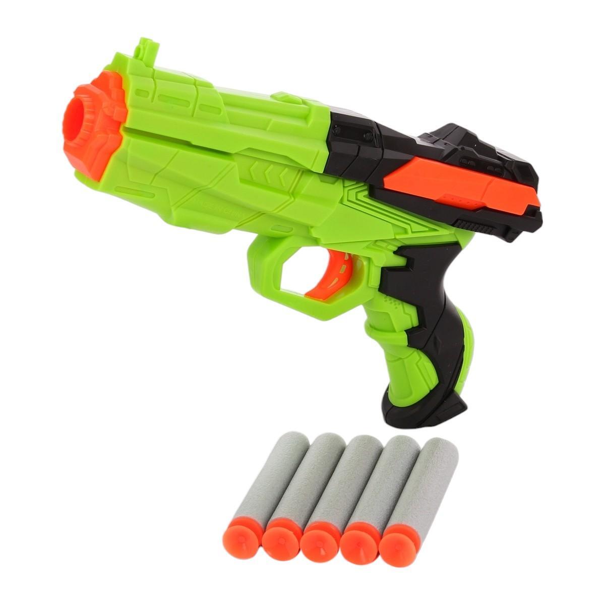 Детский бластер с мягкими пулями «YL-280», зелёный, 5 пуль, футуристический дизайн, 22х4.5х19.5 см