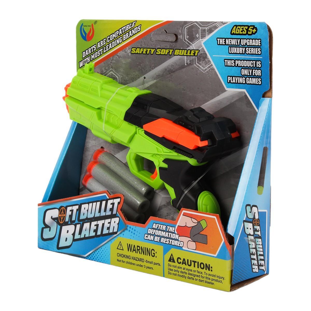Пистолет предназначен для детей от 5 лет. Перед первым применением аккуратно извлеките пули из упаковки. Для стрельбы потяните затвор и нажмите на спусковой крючок. Рекомендуем играть на открытых пространствах и использовать защитные очки.