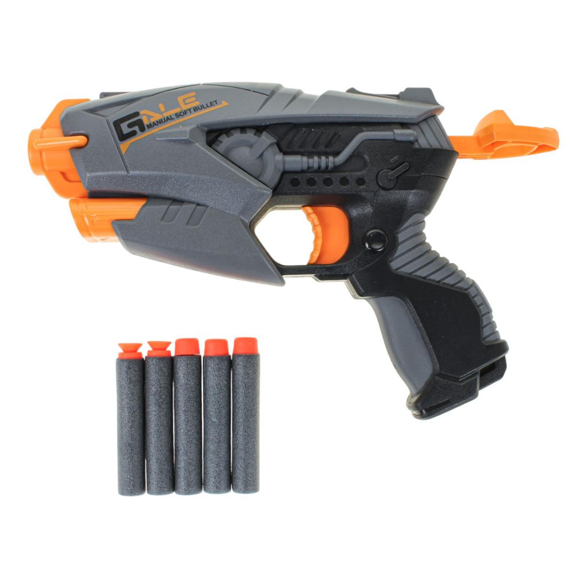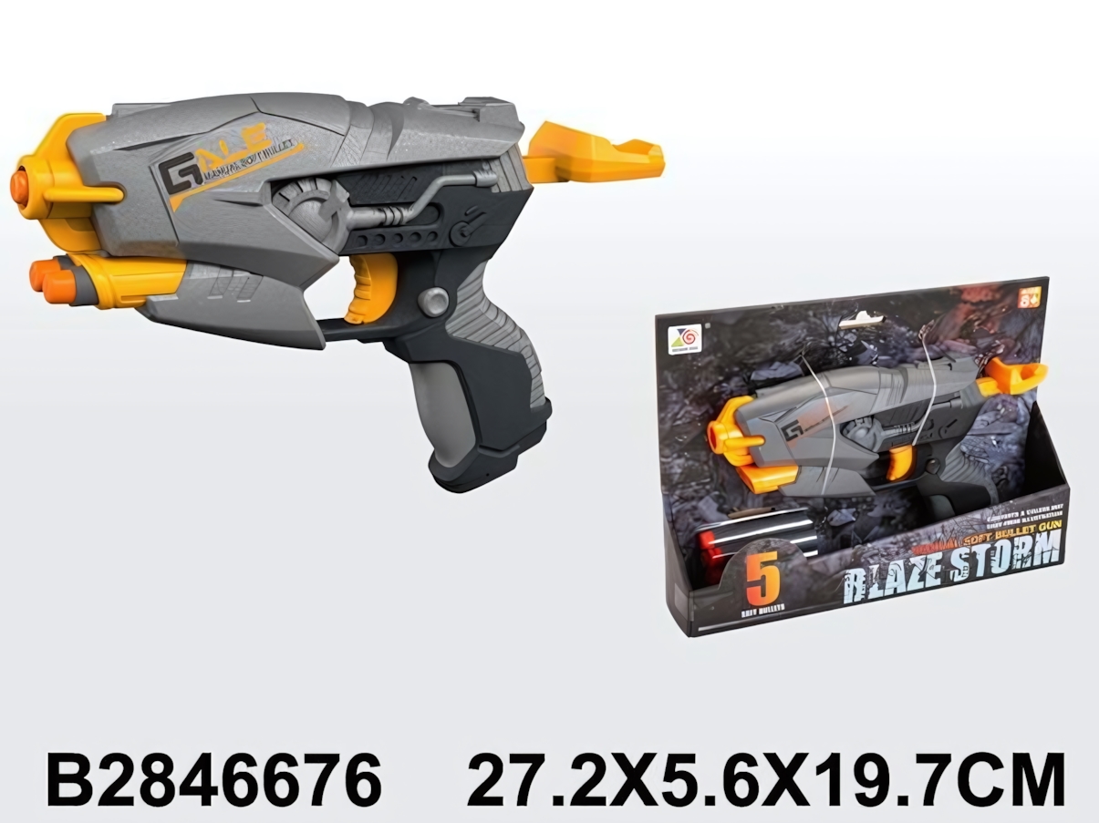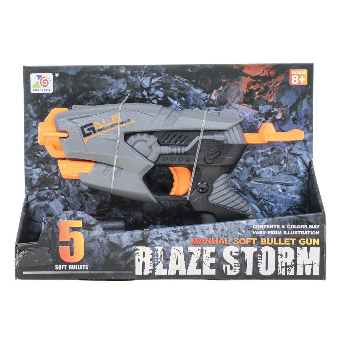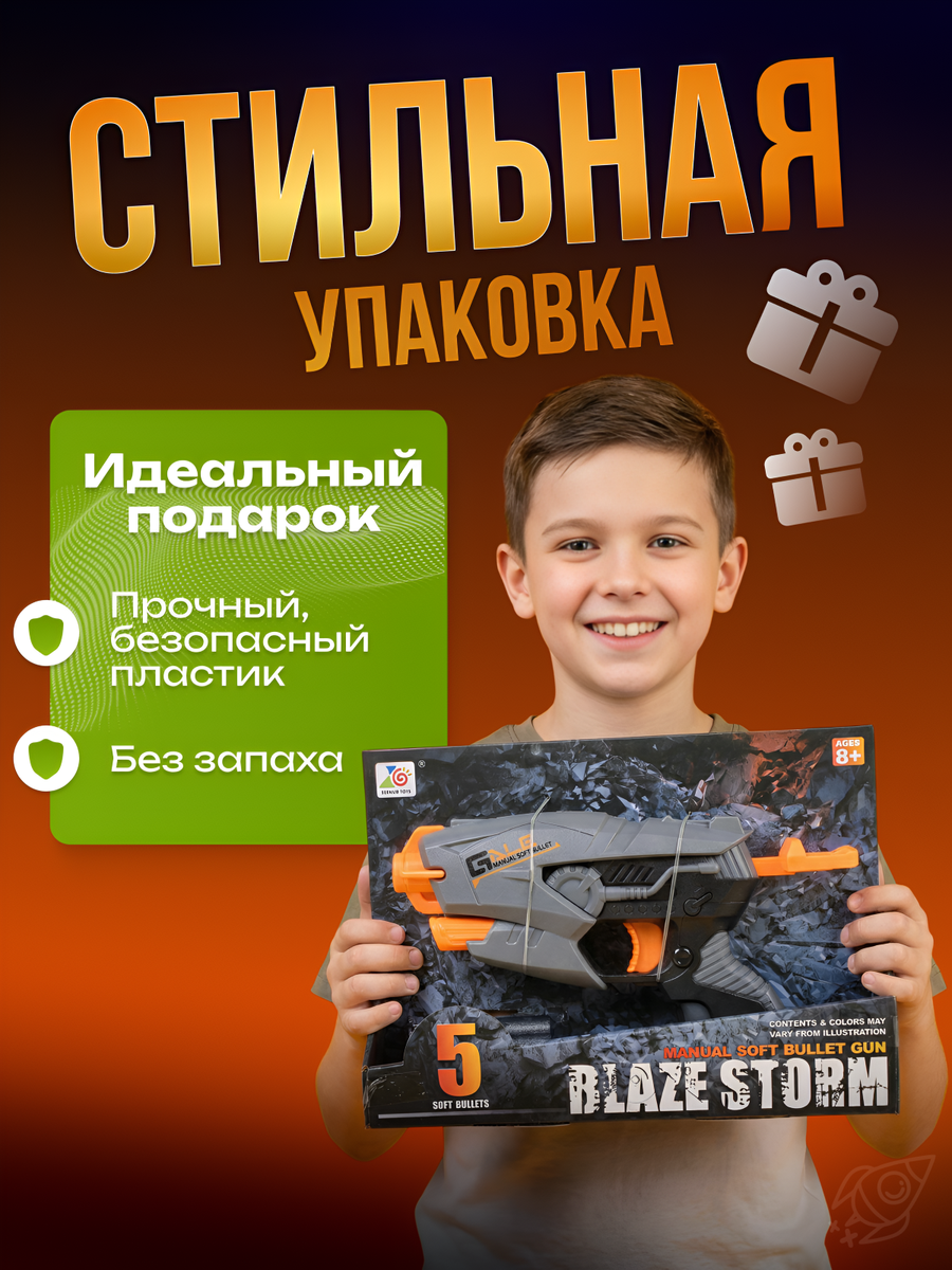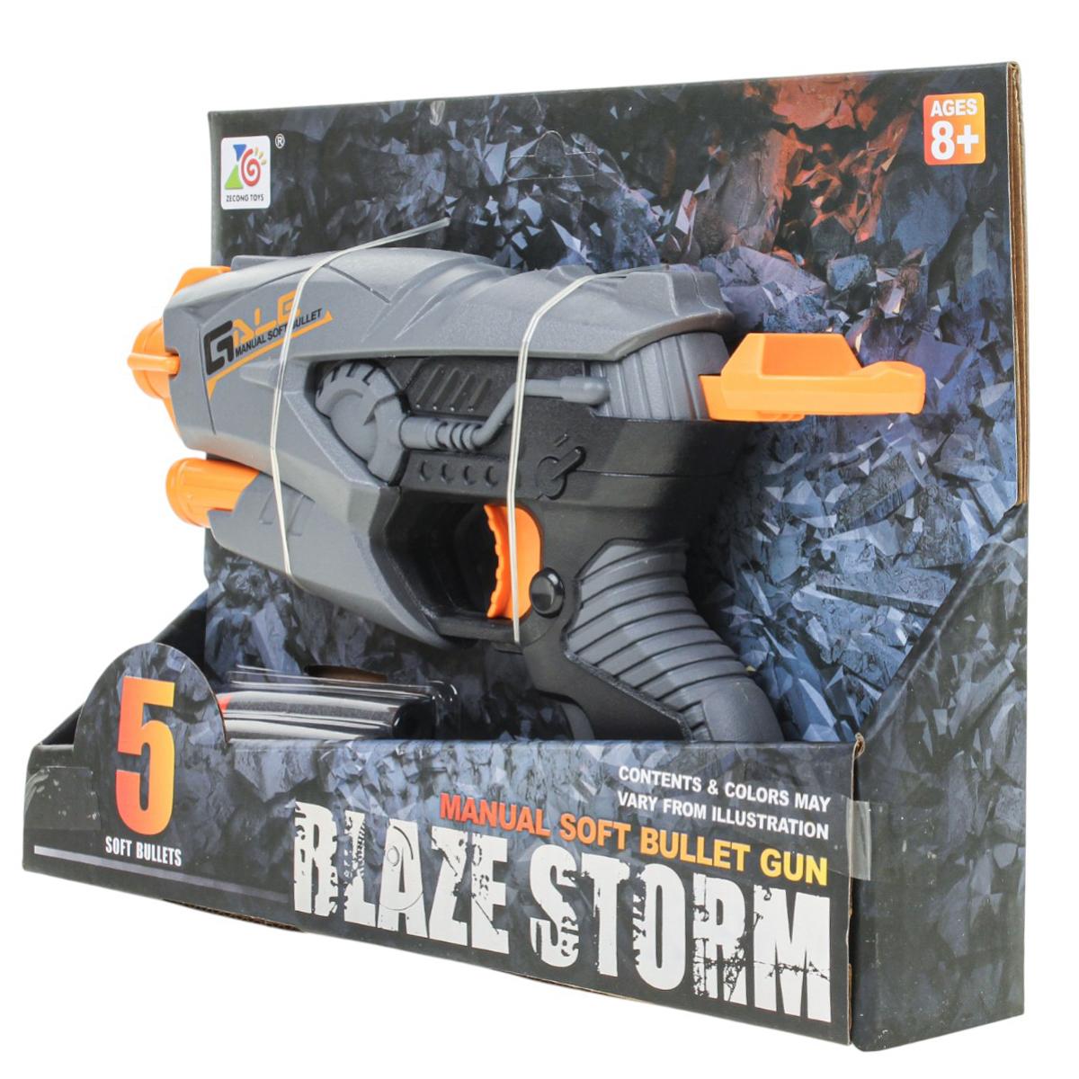 Пистолет-бластер "Blaze Storm" с мягкими пулями, 5 патронов в комплекте, серо-оранжевый, для детей от 3 лет