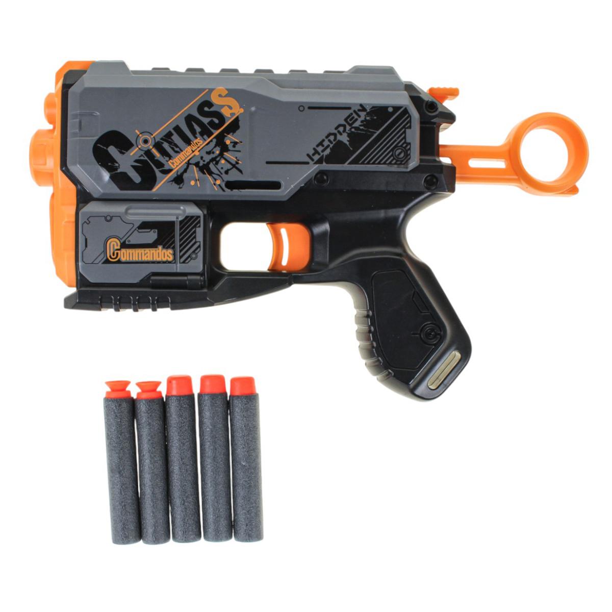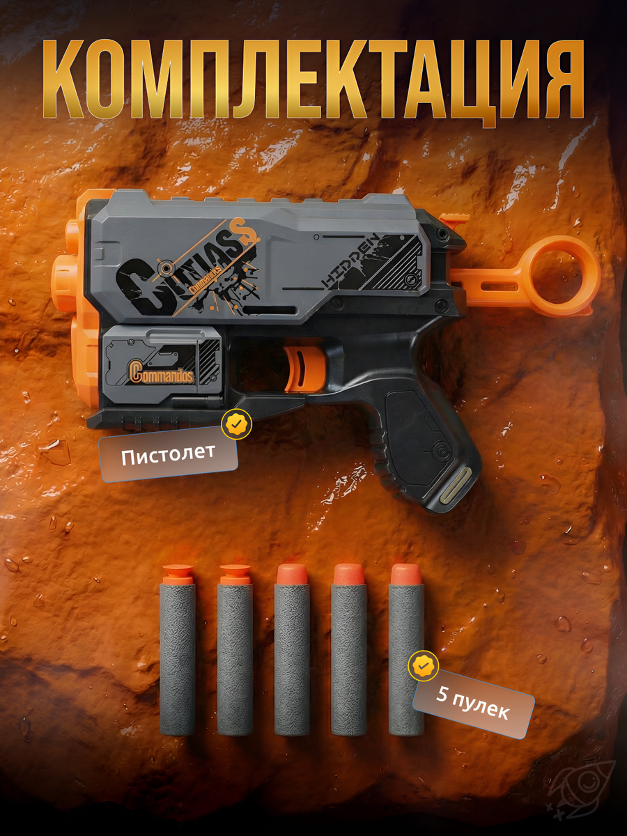 Подарите ребёнку возможность почувствовать себя настоящим героем приключений! Этот игрушечный бластер "Commandos" стреляет мягкими поролоновыми патронами, что делает игру абсолютно безопасной и увлекательной. Яркий дизайн с чёрным, тёмно-серым и оранжевым цветами привлечёт внимание и станет отличным подарком для маленького любителя активных игр.