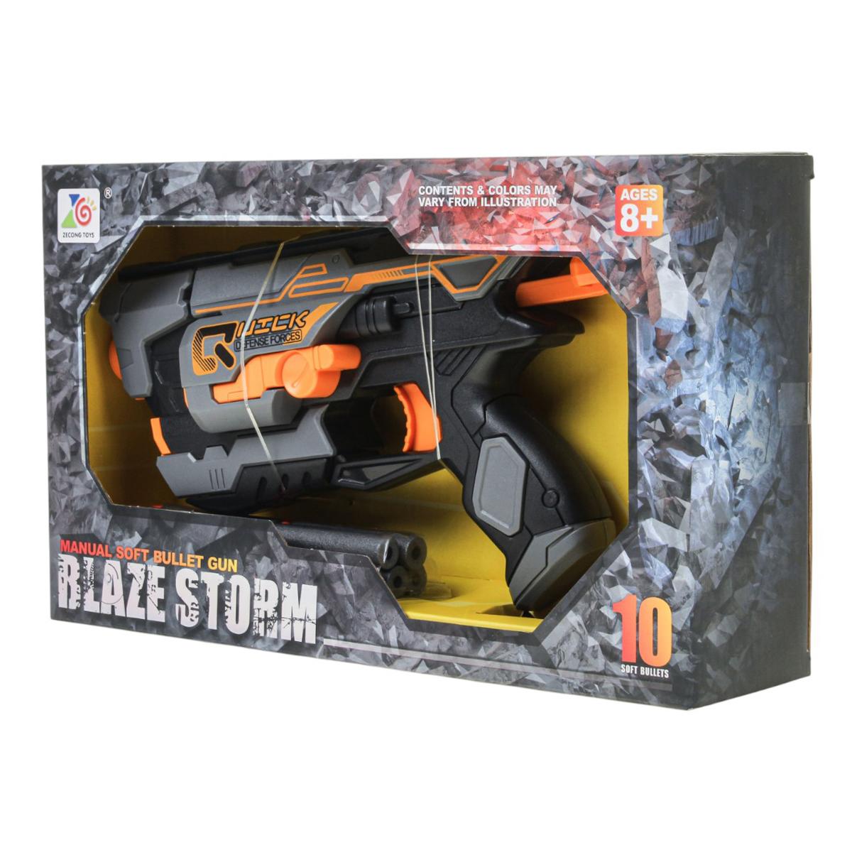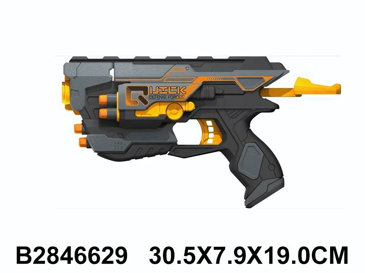 - Полная комплектация: В набор входит сам бластер и мягкие патроны для стрельбы — всё готово к игре сразу после распаковки.
