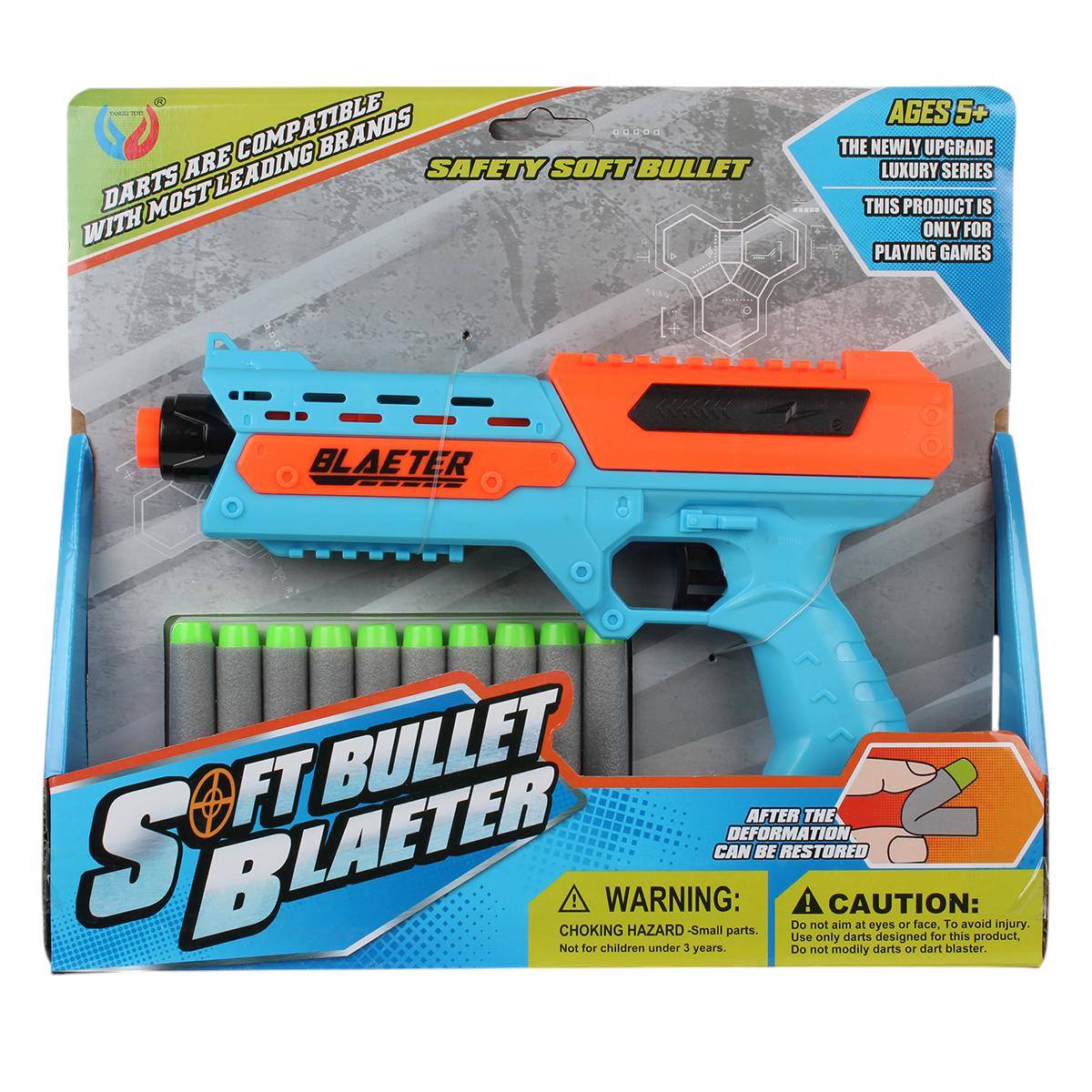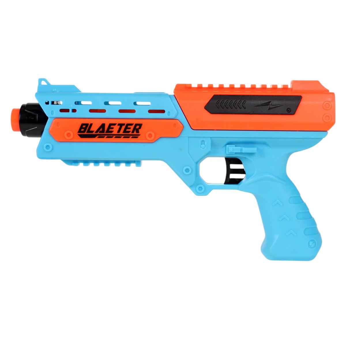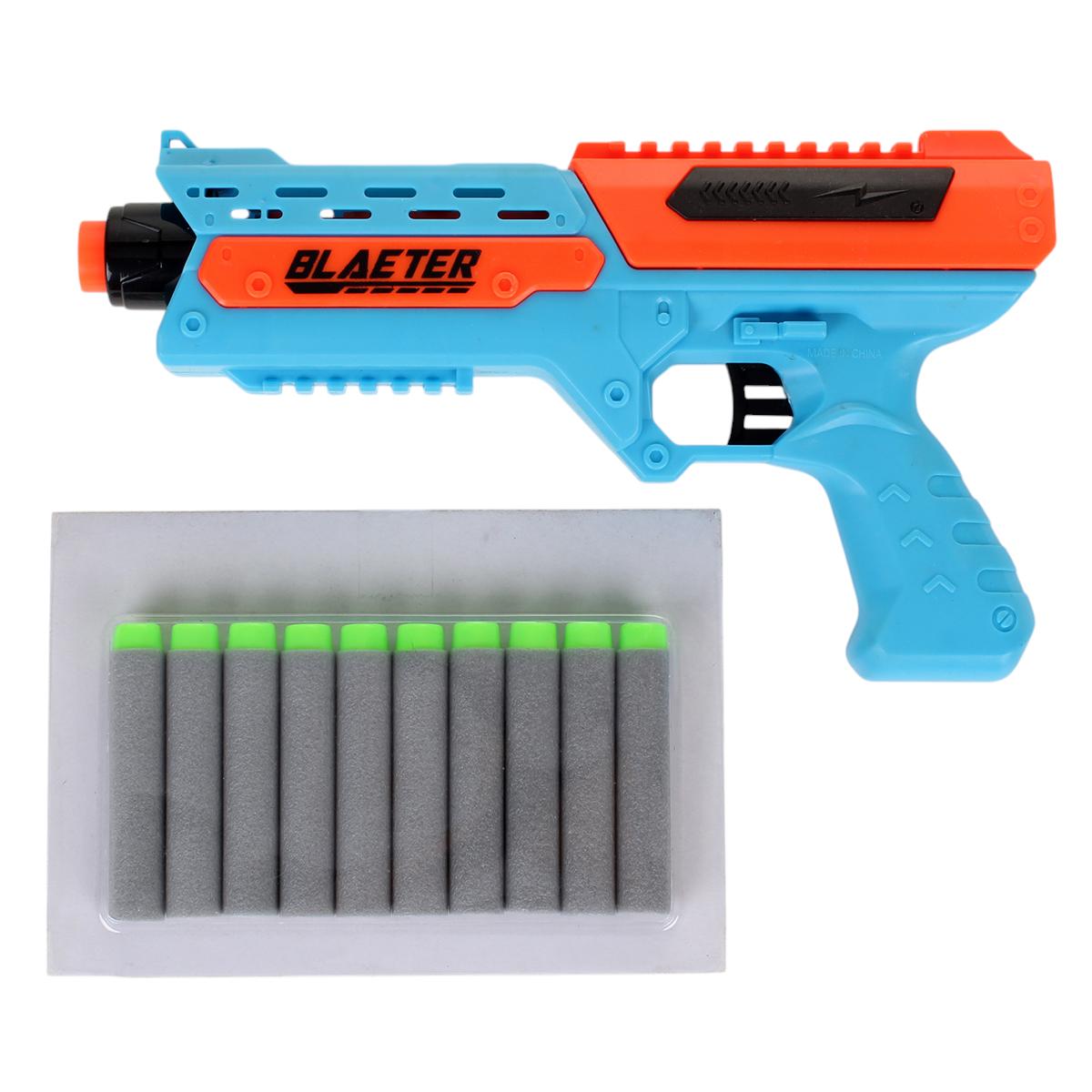 Пистолет игрушечный с мягкими пулями, 10 шт, пластик, цвета голубой/оранжевый/черный, 27,5 см