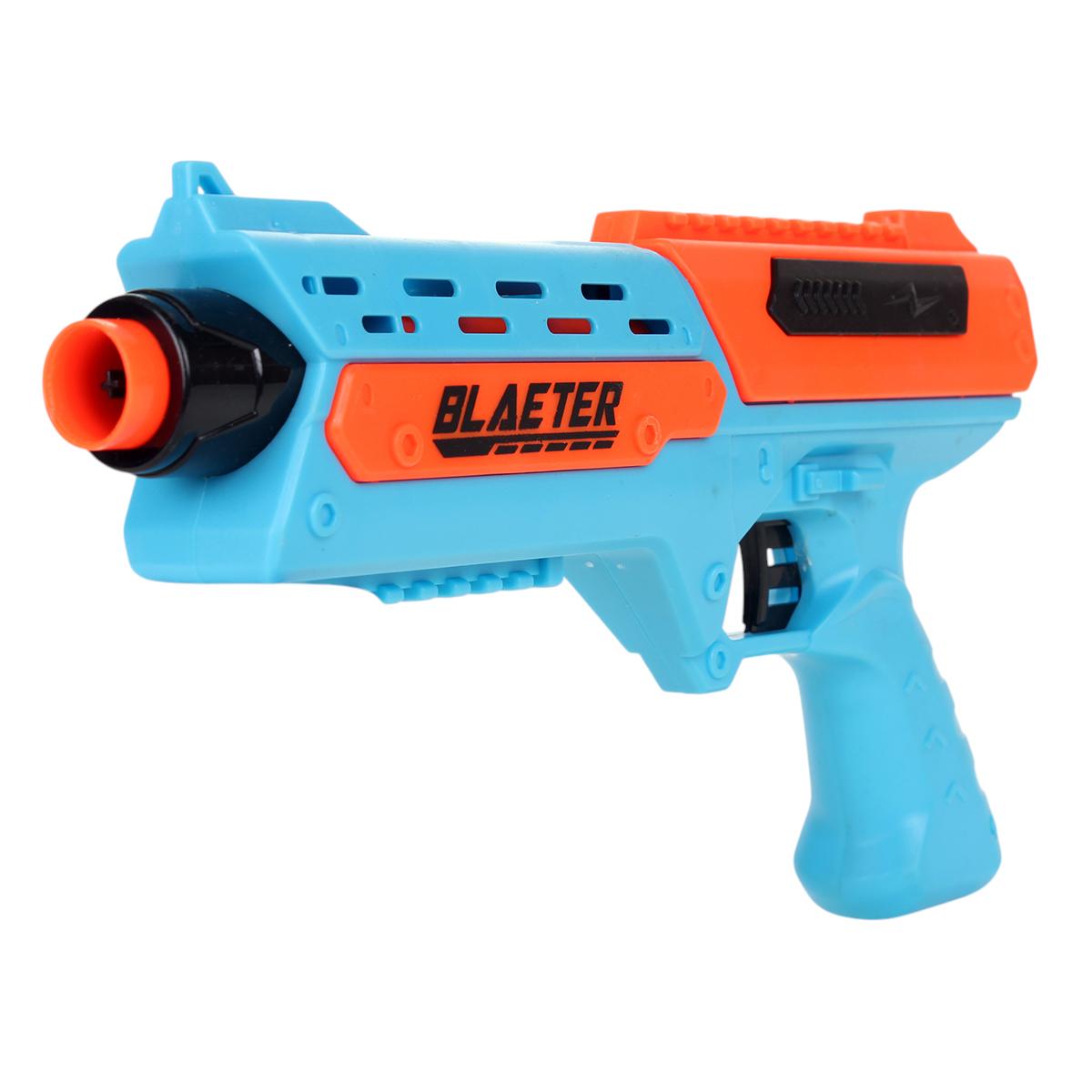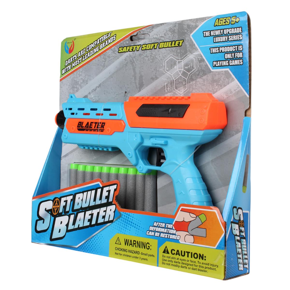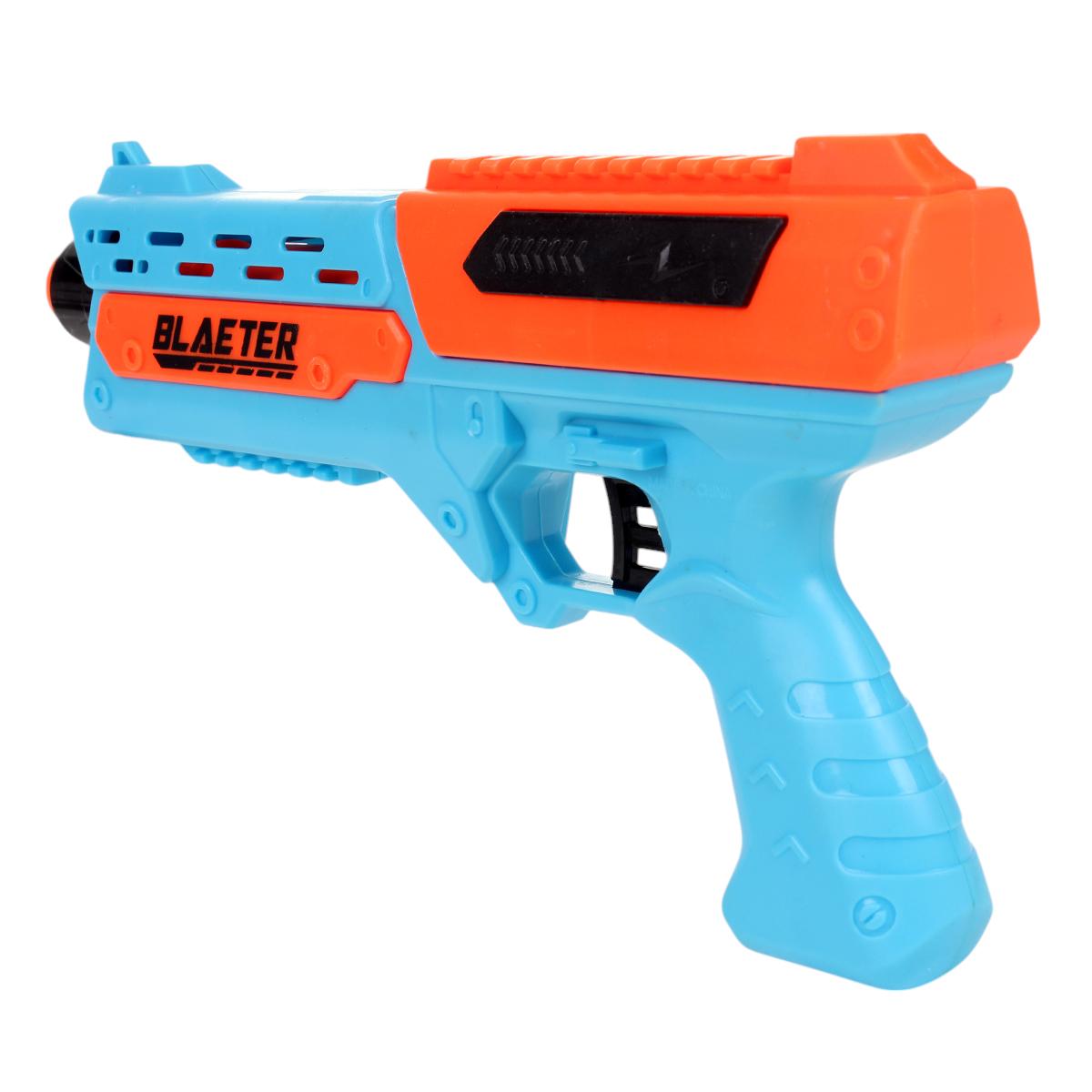 Пистолет игрушечный с мягкими пулями, 10 шт, пластик, цвета голубой/оранжевый/черный, 27,5 см