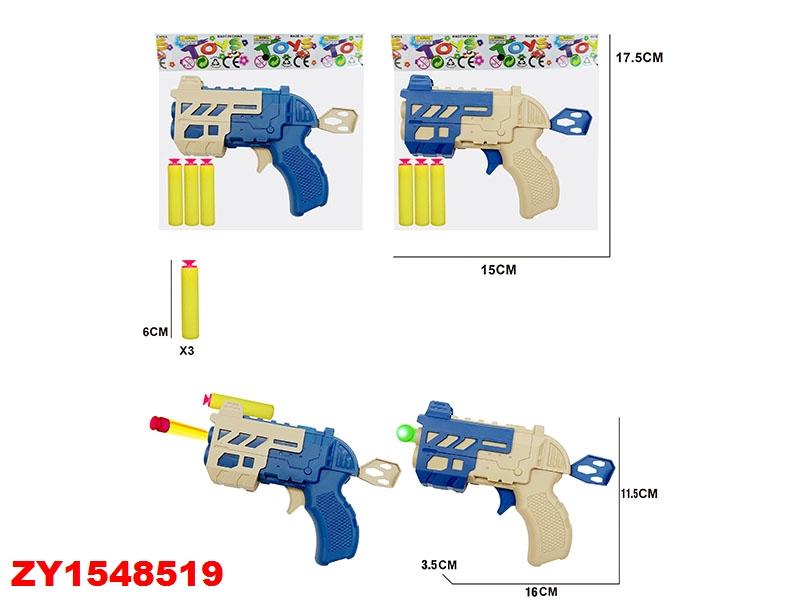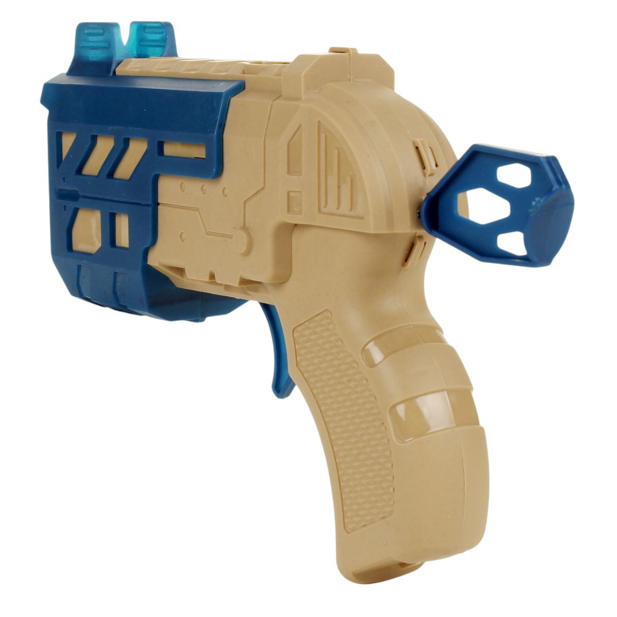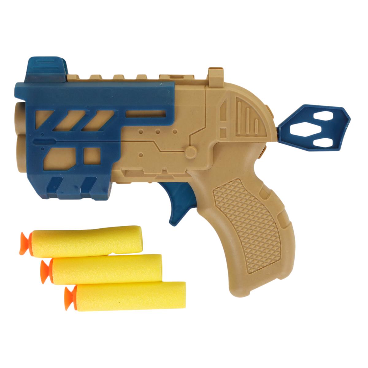 Игрушечный пистолет с мягкими патронами, 3 снаряда, сине-бежевый, пластик, 17,5 см