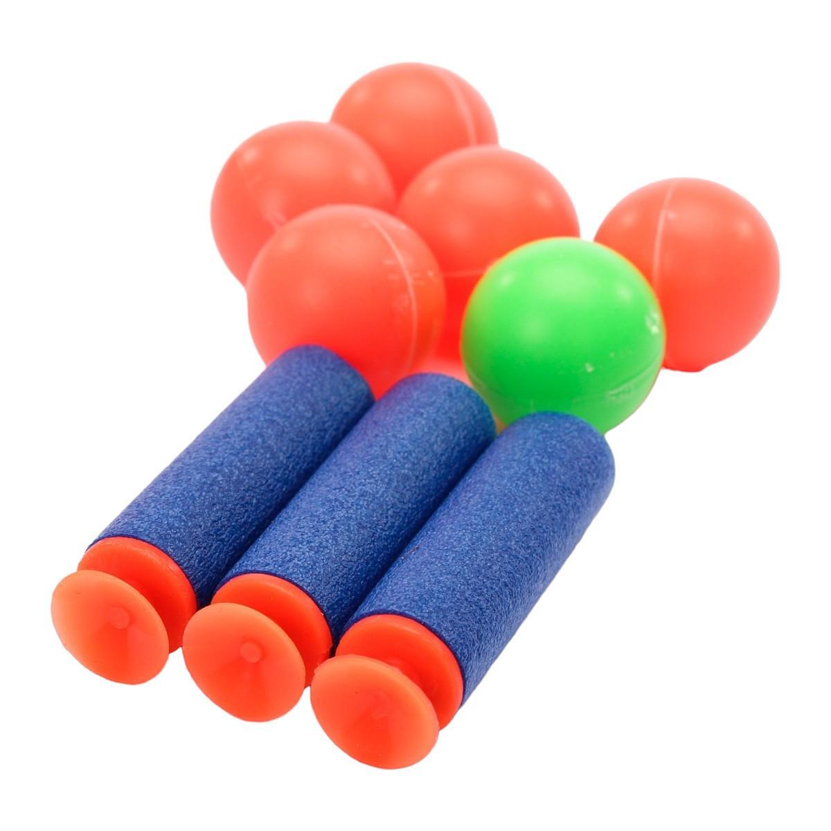 Игровой набор пистолет с шарами и мишенью, 6 шаров, 2 патрона, пластик, желто-красный, 18х3,5х10 см