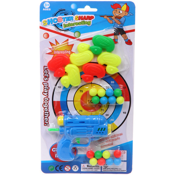 Пистолет выполнен в голубом цвете с текстурированной поверхностью для удобного хвата, что делает его комфортным в использовании. Набор подходит для детей от 3 лет и старше, что позволяет родителям быть уверенными в безопасности игры. В комплект входят цветные мишени, выполненные в красном, желтом, зеленом и голубом цветах, а также небольшие шарики, которые добавляют разнообразия в игровой процесс.