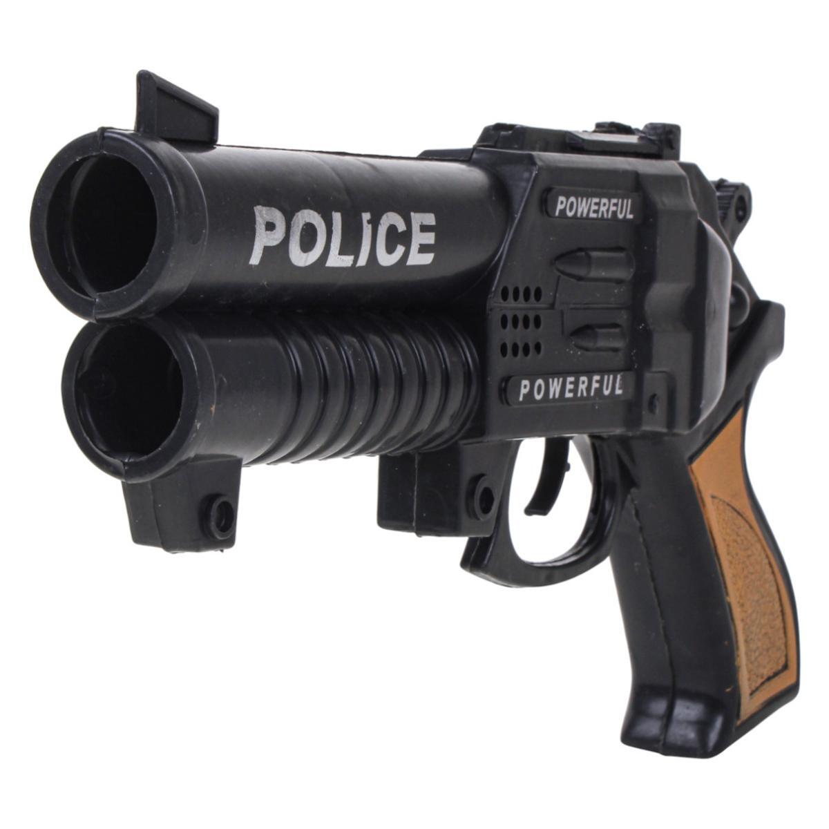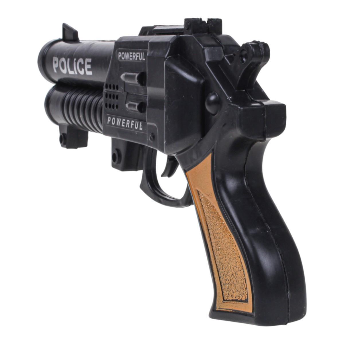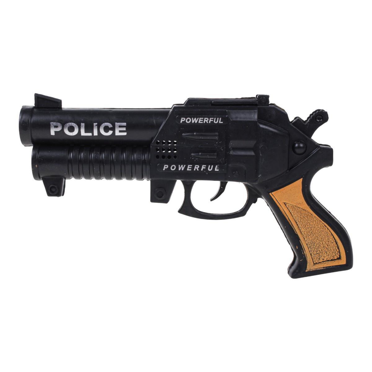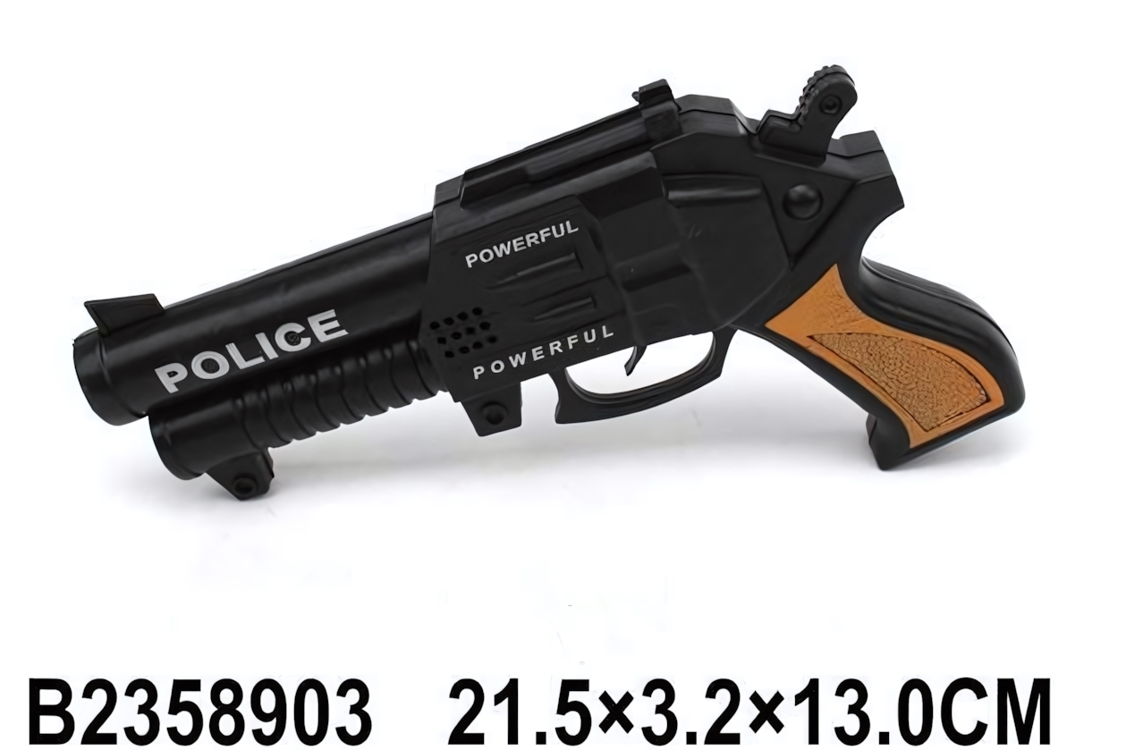 Этот пистолет-трещотка подарит вашему ребенку яркие эмоции и часы увлекательной игры. Реалистичный внешний вид с черным корпусом и коричневыми вставками на рукоятке, а также надписями «POLICE» и «POWERFUL» на корпусе придают игрушке особенный шарм. При нажатии на спусковой крючок раздается звук, имитирующий выстрел, создаваемый встроенной механической трещоткой — без батареек и сложных механизмов.