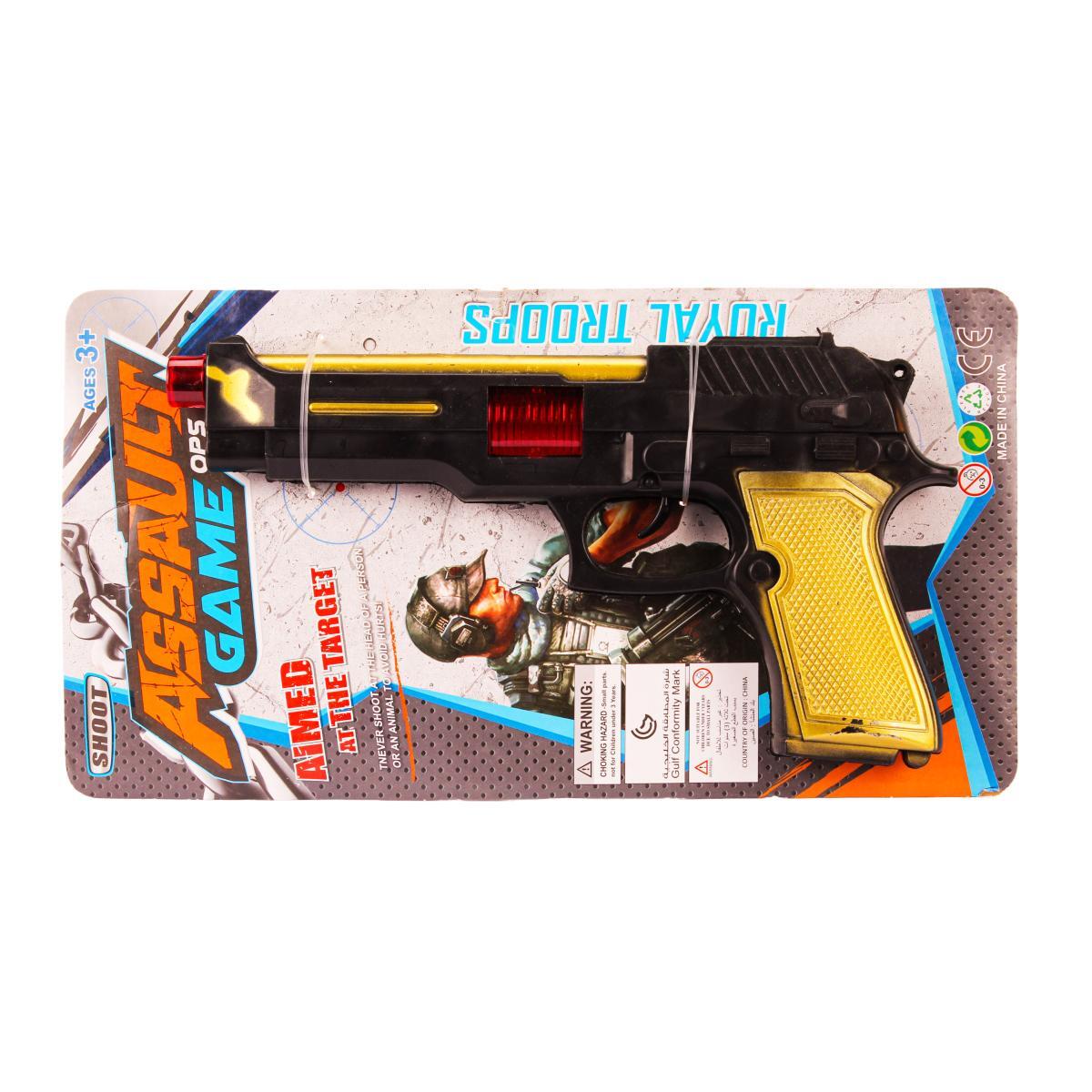 Пистолет игрушечный «ASSAULT GAME OPS» со звуком стрельбы, световые эффекты, черный с желтым и красным, 29 см, пластик