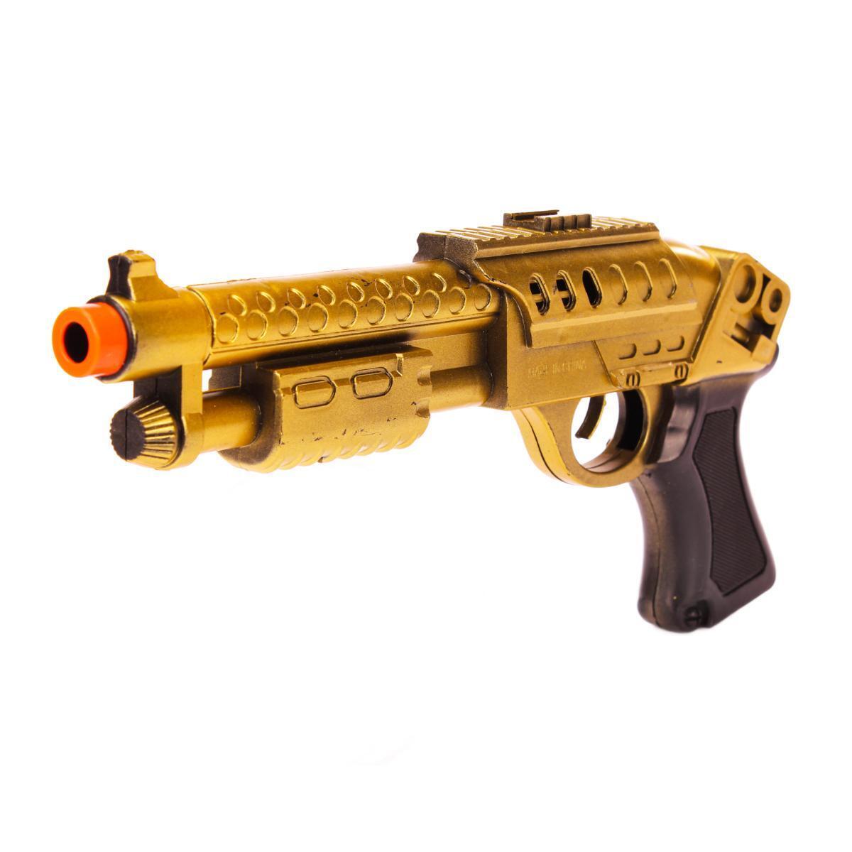 Этот пластиковый пистолет-трещетка длиной 29 см идеально подойдет для детей и подростков, любящих имитировать вооруженные сцены и создавать захватывающие приключения. Благодаря реалистичному дизайну, имитирующему настоящее оружие, и яркому золотому цвету с черными деталями, он привлекает внимание и подчеркивает стиль и динамику активных игр.