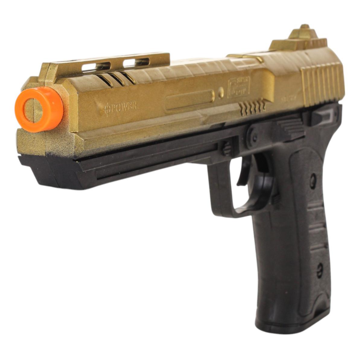 Идеально подходит для детей старше 6 лет и подростков, обеспечивая безопасное и интересное времяпрепровождение без риска травм. Выполнен из прочного и легкого пластика с ярким корпусом в золотом цвете с черной рукояткой, что позволяет удобно держать и управлять им во время игры.