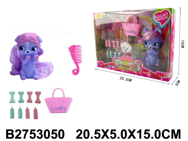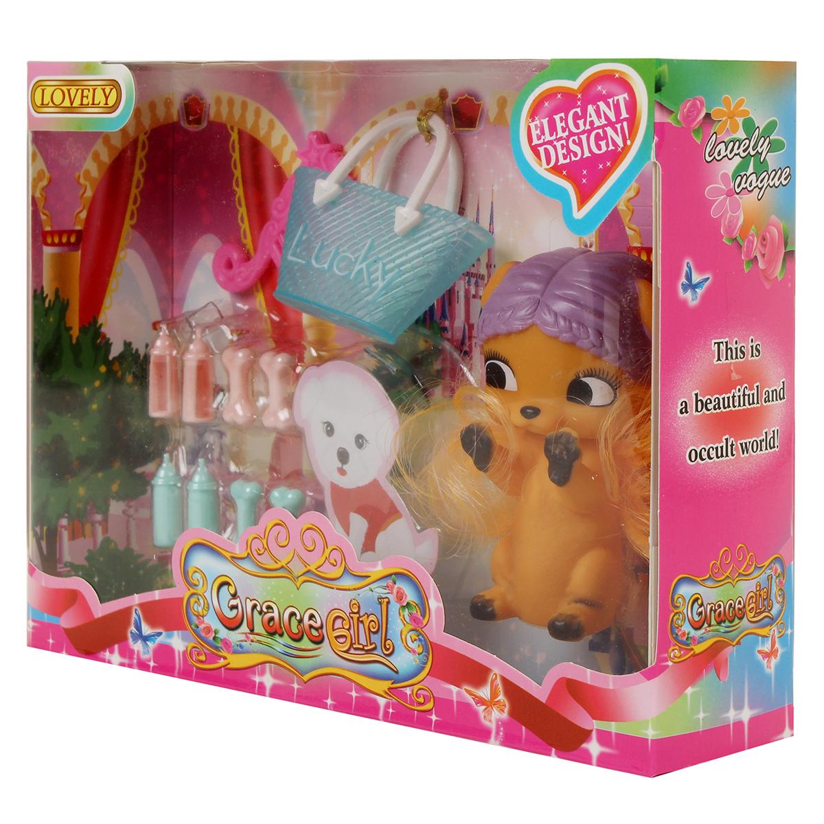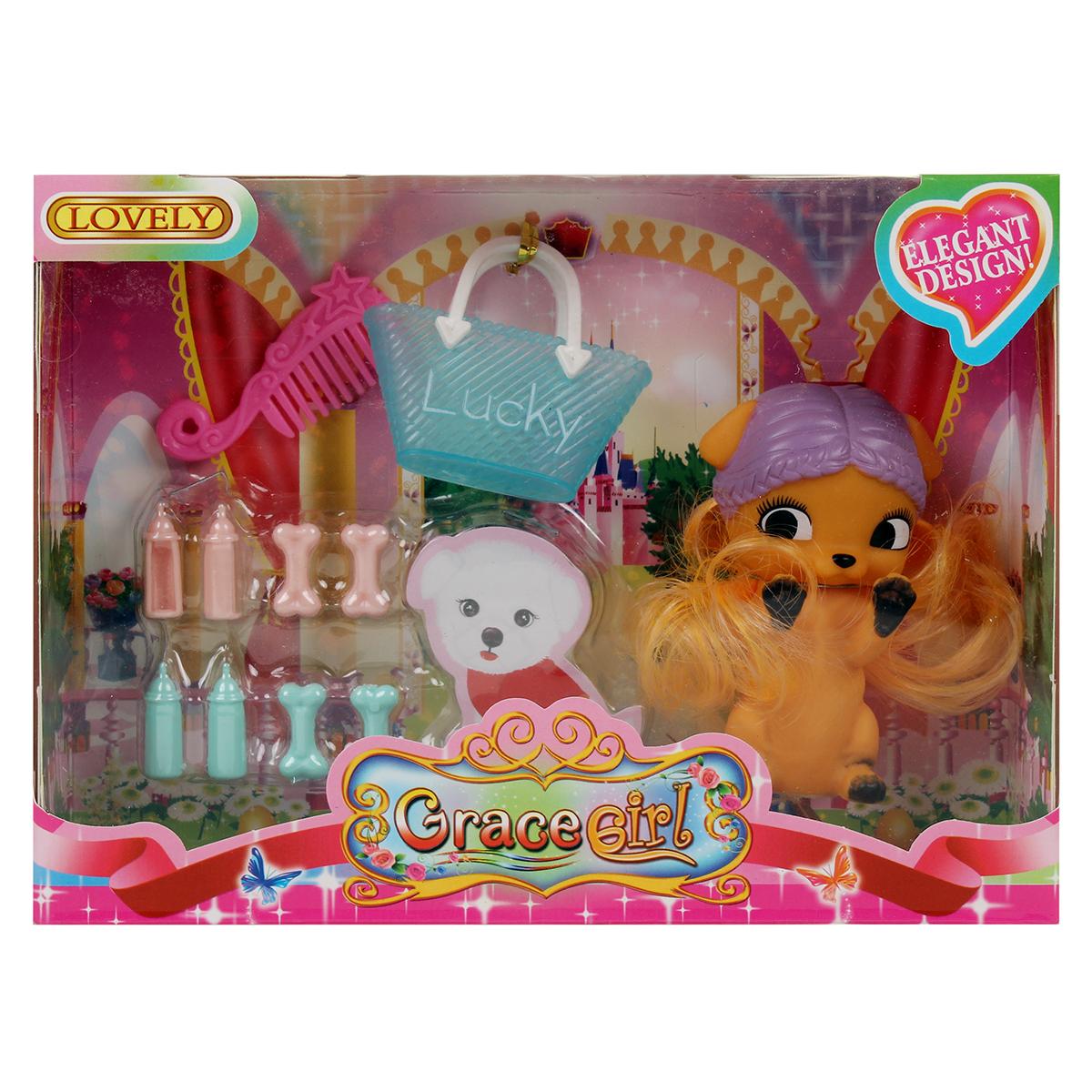 Игровой набор "Grace girl", питомец с аксессуарами: собака, сумка, расческа, 12 см, пластик/текстиль, 20.5х15 см