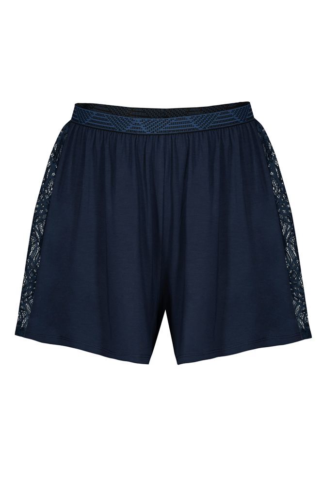 Эта пижама состоит из свободного топа без рукавов и шорт, что делает её идеальной для теплых вечеров. Топ с V-образным вырезом и кружевной отделкой на груди обеспечивает не только стильный внешний вид, но и комфорт при носке. Шорты на эластичной резинке с боковыми вставками из кружева обеспечивают удобство и свободу движений, что делает их идеальными для сна или отдыха дома.