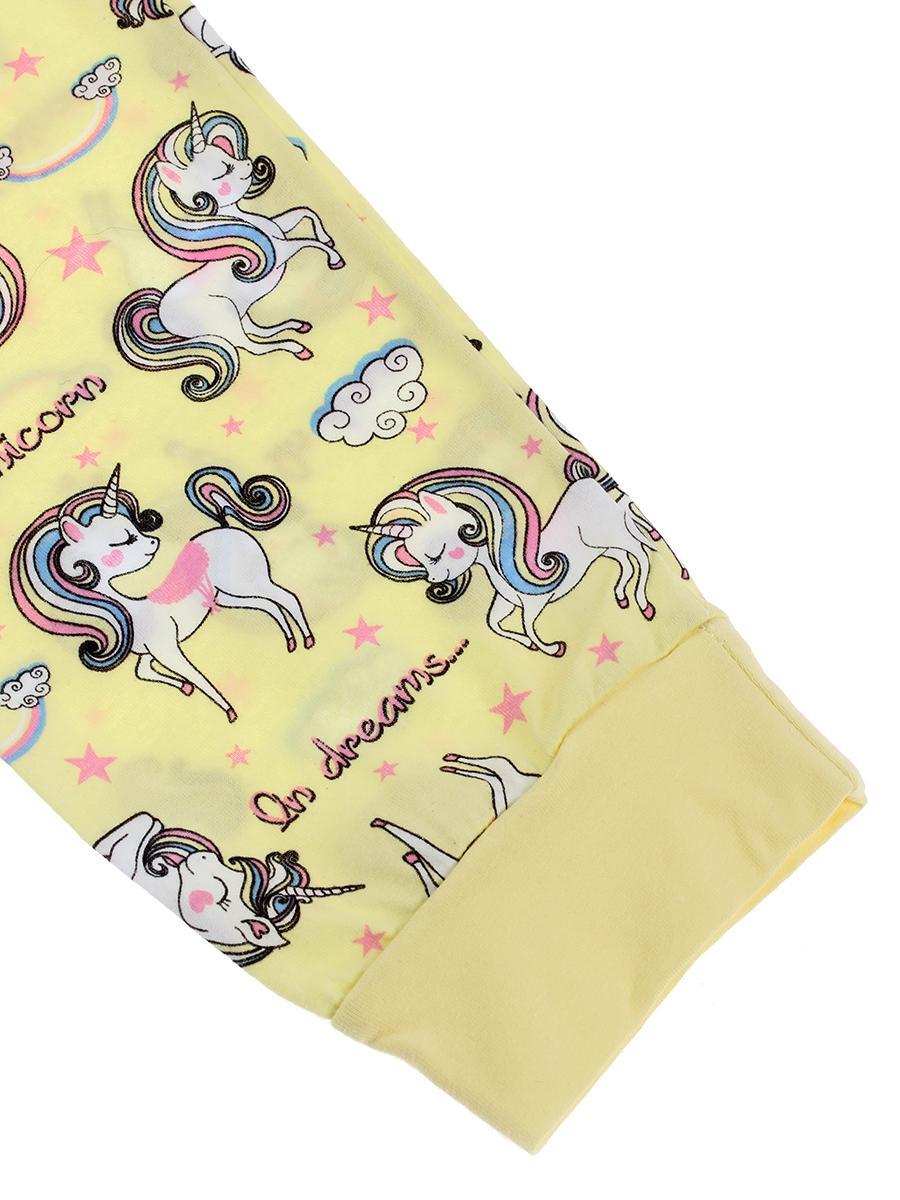 Пижама детская для девочек 6-7 лет, 100% хлопок, принт единороги, желтый, Bambak