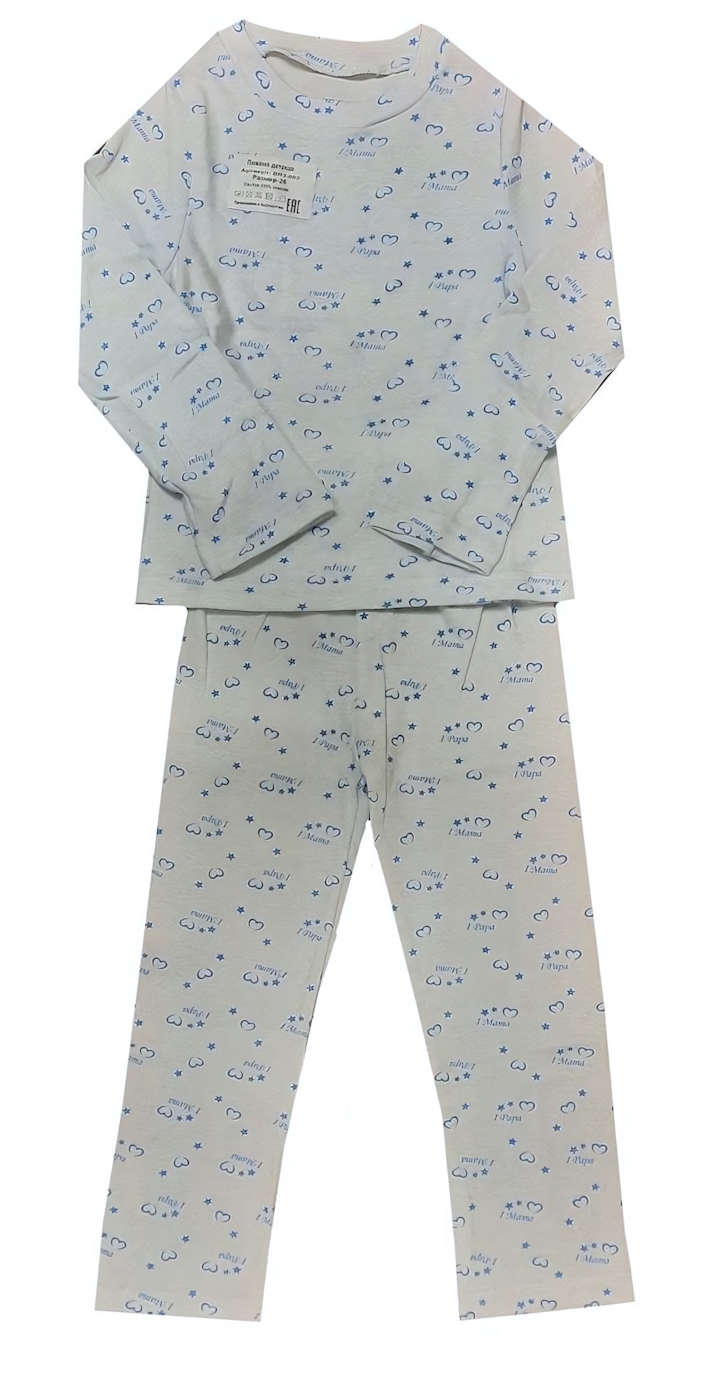 Пижама детская "Boru", 100% хлопок, размер 28, голубой с сердечками, кофта и брюки
