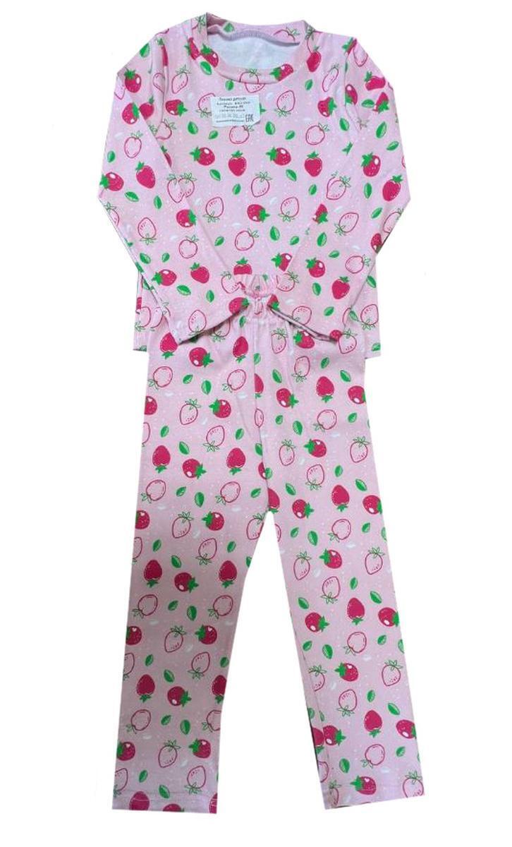 Пижама для девочки "BR3-002", розовый с клубникой, 100% хлопок, р.32