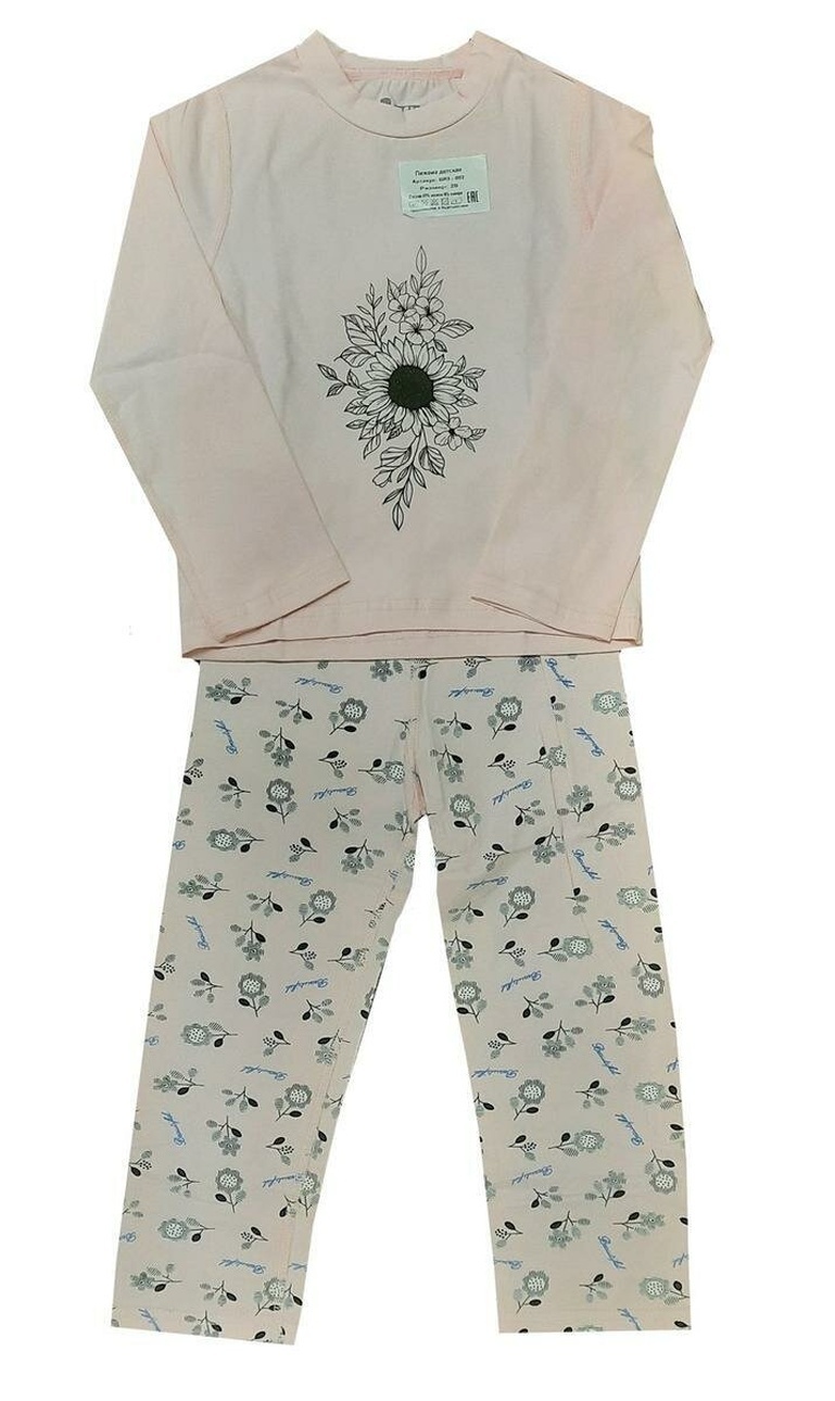 Пижама для девочки, размер 32, светло-розовая с цветочным принтом, 100% хлопок, мягкий комфорт на ночь